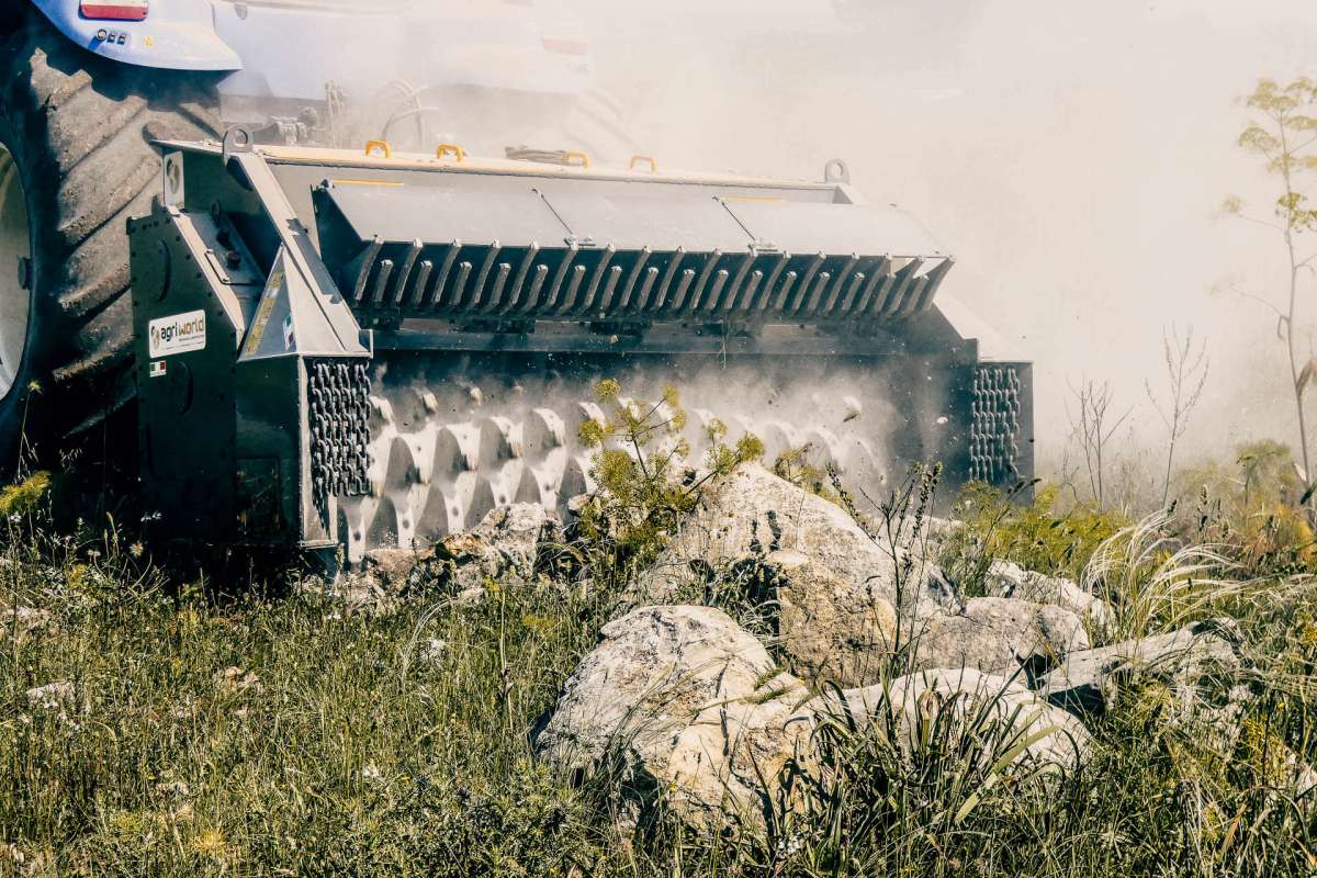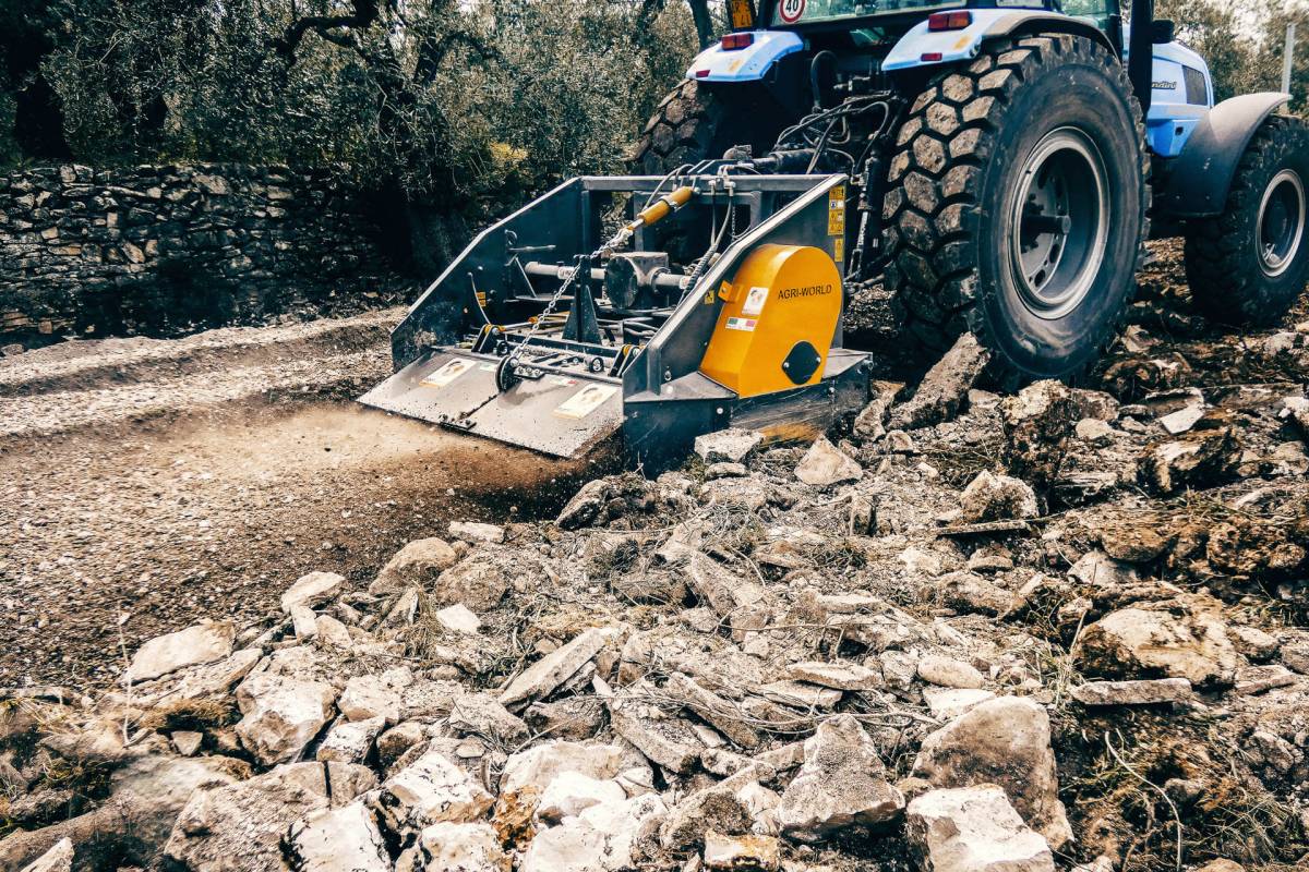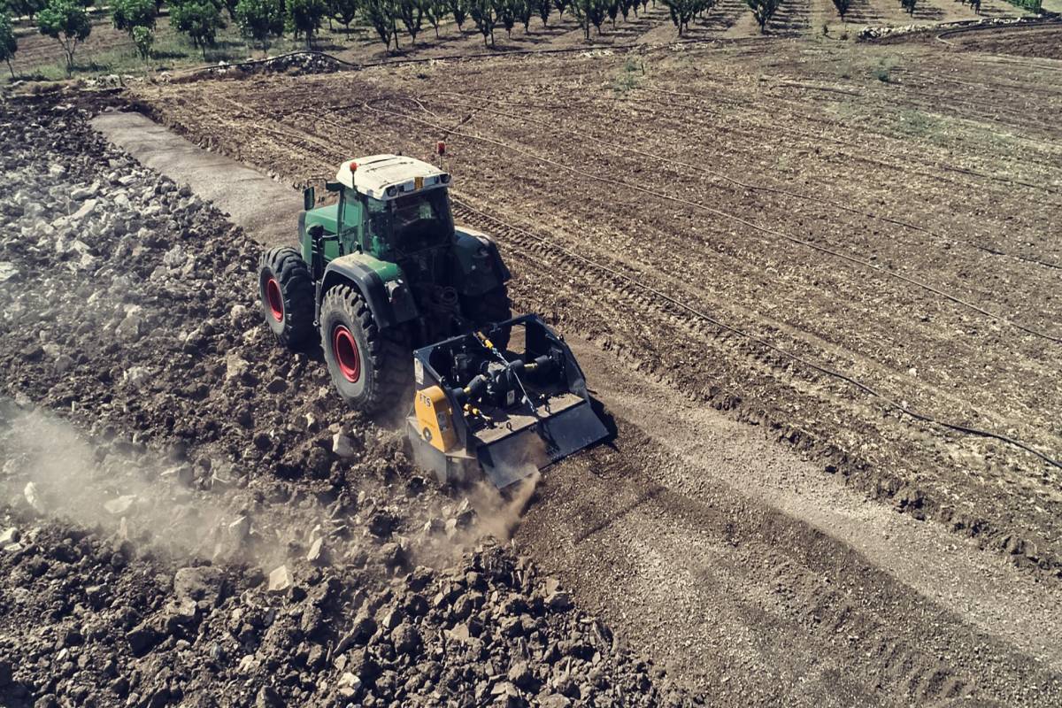 Обратный звонокКамнедробилки это машины, разработанные и изготовленные для измельчения любых камней, дерна, для земельных участков любого вида возделывания (пашни, виноградники, фруктовые сады, огороды, восстановление лесных зон, чистка подлеска и т.д.) без проведения предварительных работ. Благодаря своей особой прочности, они подходят также для скалистых участков. Могут работать в любое время года, также на мокрой земле. Глубина обработки зависит от модели. Для FTS требуется трактор с супер редуктором или коробкой передач Vario. Они состоят из ротора со сменными инструментами с Widia наконечником. Трансмиссия может быть с ремнями, цепями или шестернями.