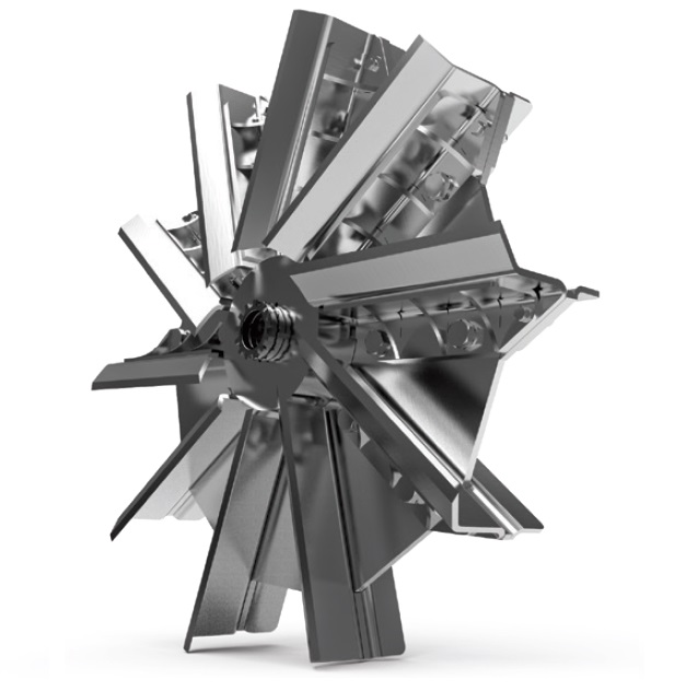 - Дисковый нож, состоящий из 12-и ножей с твердосплавным покрытием и 6-и направляющих лопастей.