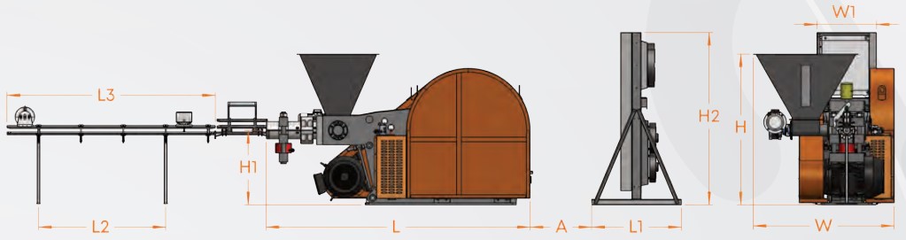 | L | L1 | L2 | L3 | W | W1 | H | H1 | H2 | Древесная щепа | Лузга подсолнечника | Измельченная лузга подсолнечника | |||