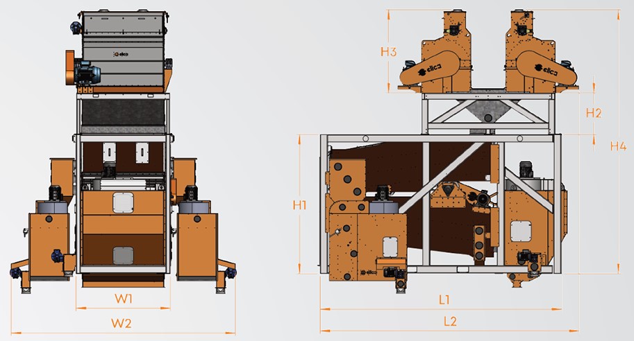 Зернорушки Elica равномерно распределяют входящий материал по всей рабочей площади, при помощи регулировки скорости распределяющего механизма. Оборудование обеспечивает высокое качество конечного продукта без необходимости повторения цикла. Система оснащена компьютерным устройством дистанционного управления, которое предоставляет возможность контролировать весь процесс. В зернорушку встроен магнитный сепаратор для улавливания ферромагнитных частиц, которые могут содержаться во входящем потоке подсолнечника. Быстро изнашивающиеся контактные детали произведены из прочных материалов, благодаря чему имеют увеличенный срок службы. Зернорушка спроектирована таким образом, чтобы обслуживание и замена запасных частей проводилась легко и быстро.