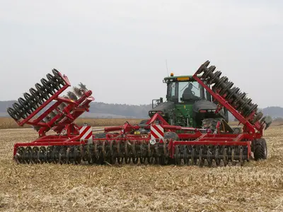 - Возможность использования при наличии длинных пожнивных остатков. Высокая проходимость благодаря попарному креплению дисков к стойкам.