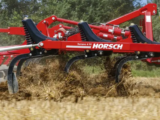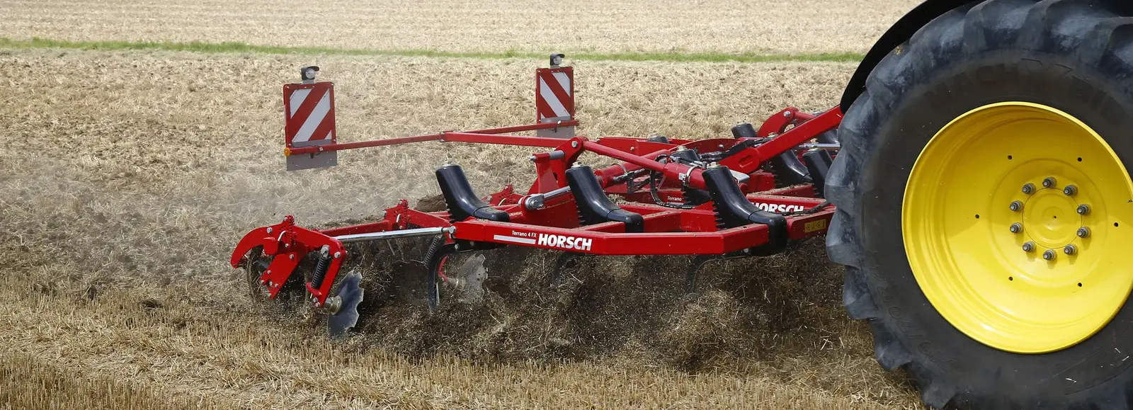 Horsch Terrano FX – компактный универсальный трёхрядный культиватор с широким спектром применения, может быть использован как для поверхностной стерневой обработки, так и для интенсивной культивации с перемешиванием пожнивных остатков на глубину обработки от 5 до 30 см.