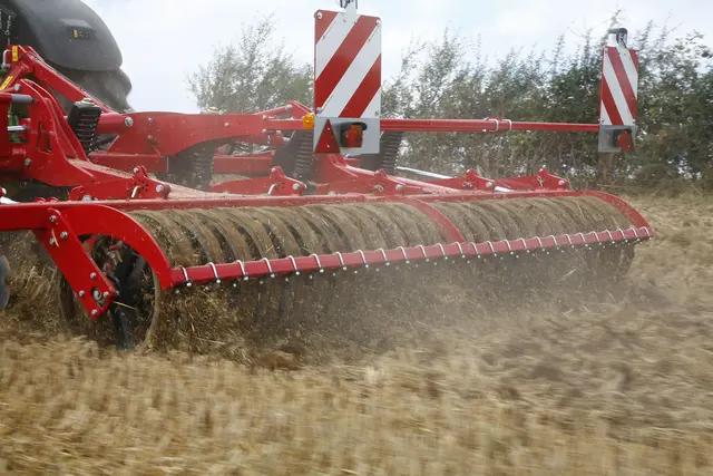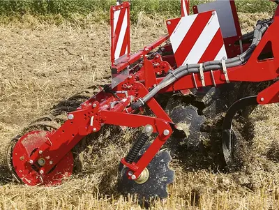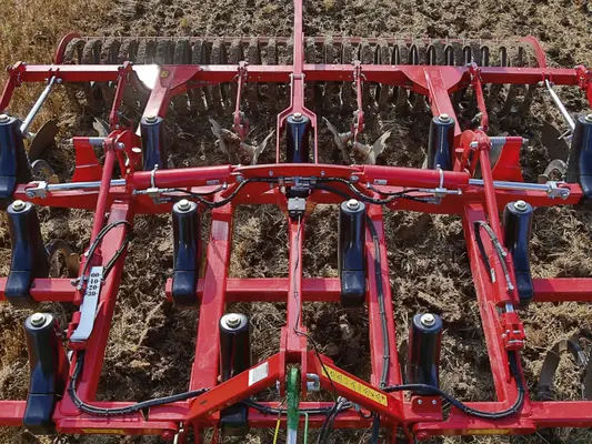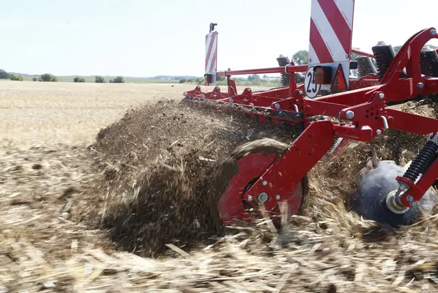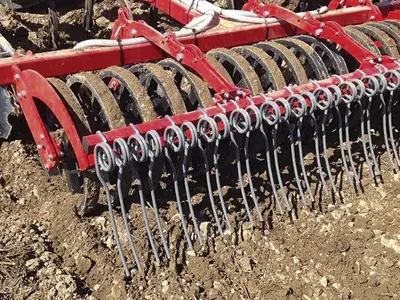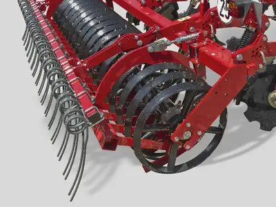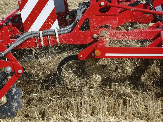 Мощные стойки с защитой TerraGrip удерживают лапы на заданной глубине хода. Многорядное расположение рабочих органов обеспечиваетинтенсивноеперемешивание почвы. Ряд выравнивающих дисков исключает образование гребней и способствует равномерному выравниванию поверхности. Вследствиеперераспределения веса машины на катокпочвоуплотнителя, эта масса эффективно используется для интенсивного обратного уплотнения обработанного слоя почвы.