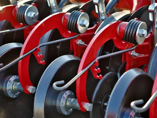 - Стальной зубчатый прикатывающий ролик образует достаточно мелкокомковатой почвы для закрытия борозды в самых грубых условиях.