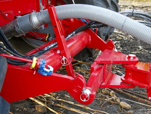 Шесть возможных гидравлических подключений, ISOBUS интерфейс, обособленные линии для подключения электрики и пневматики позволяют агрегатировать бункер с большим количеством прицепных машин.