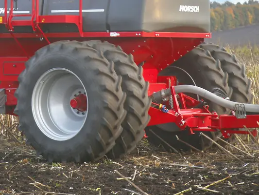 Различные варианты пневматики позволяют многочисленные варианты комбинаций машин для обработки почвы и посева с бункерами HORSCH.