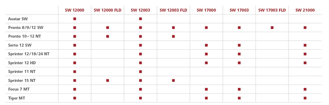 | HORSCH Бункер | SW 12000 | SW 12003 | SW 17000 | SW 17003 | SW 21000 |