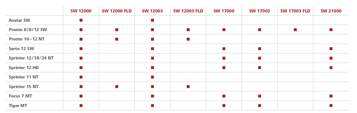 | HORSCH Бункер | SW 12000 | SW 12003 | SW 17000 | SW 17003 | SW 21000 |