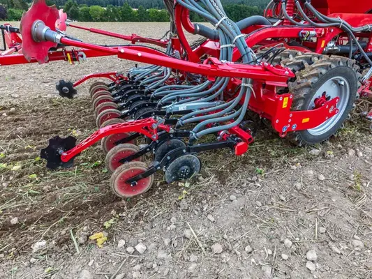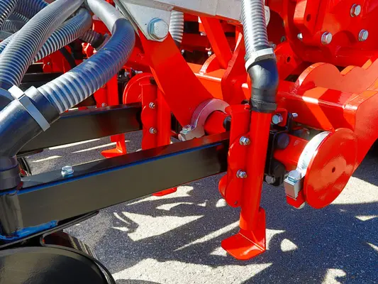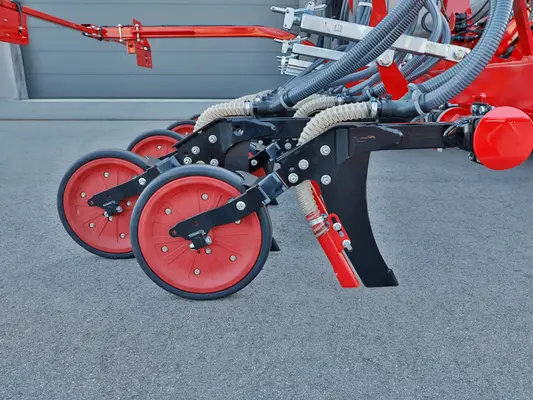 - Сразу два сошника TurboDisc осуществляют посев в борозду, проделанную стойкой TerraGrip и уплотнённую колесом почвоуплотнителя