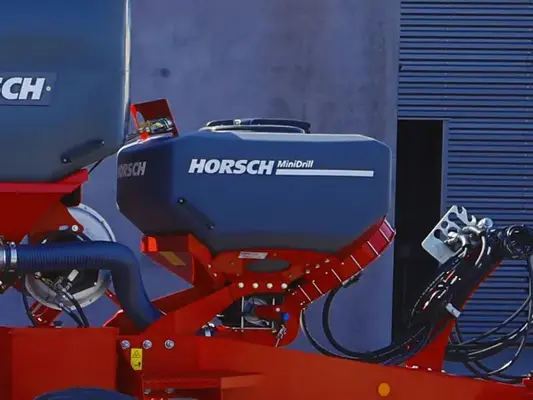 HORSCH предлагает два варианта MiniDrill. MiniDrill G & F используется как дополнительный третий бак для семян. Это позволяет почти в два раза увеличить машины производительность при посеве рапса. MiniDrill с объемом бака 400 л и оборудованием для посева рапса позволяет использовать оба отсека большого бункера (2 000 и 3 000 л) для минерального удобрения, что позволяет снизить количество остановок для загрузки .