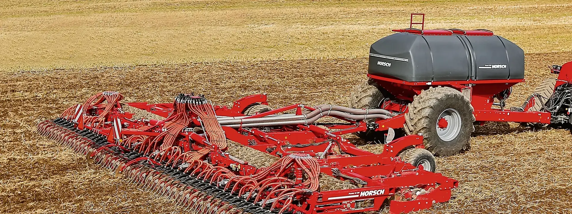 Раздельное положение бункера и сеялки имеет преимущество, что степень загрузки бункера не влияет на ход рабочих органов сеялки. Это позволяет оснащать машины с шириной захвата от 8 м бункерами HORSCH большого объема. Для загрузки может использоваться как собственный загрузочный шнек, так и внешний загрузчик. Раздельная концепция бункера и сеялки Pronto значительно облегчает подъезд к машине.