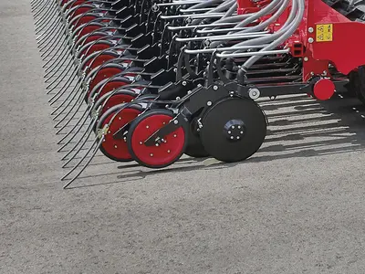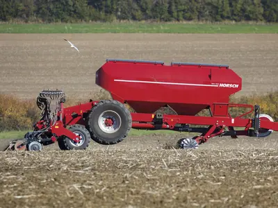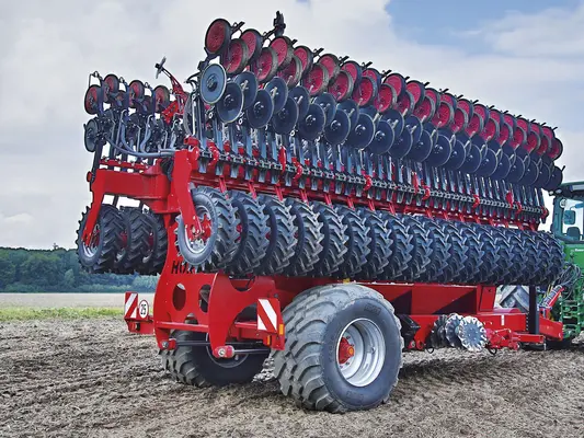 Новый сошник HORSCH PowerDisc с давлением до 150 кг идеален для работы в сложных условиях, в т.ч. и на тяжелых почвах. В подвеске дисков используются мощные подшипники большого диаметра, гарантирующие долгую, надежную и бесперебойную работу узла. Здесь был использован опыт конструкторов при создании машин Maestro. Объем 2-секц. бункера Serto составляет 6 000 л в соотношении 60 : 40. Таким образом, одна загрузка включает или 6 000 л одних семян, или семян и удобрений в объеме 3 600 л спереди и 2 400 л сзади. Для использования микроэлементов предусмотрен дополнительный бункер объемом 300 л. Для рыхления колеи трактора используются анкерные или дисковые следорыхлители. Попарно монтированные диски оптимальны на тяжелых почвах, т.к. не создают грубой структуры перед сошниками. Транспортная ширина машины составляет 3 м, а для несложного перевода в транспортное положение достаточно одного нажатия кнопки.