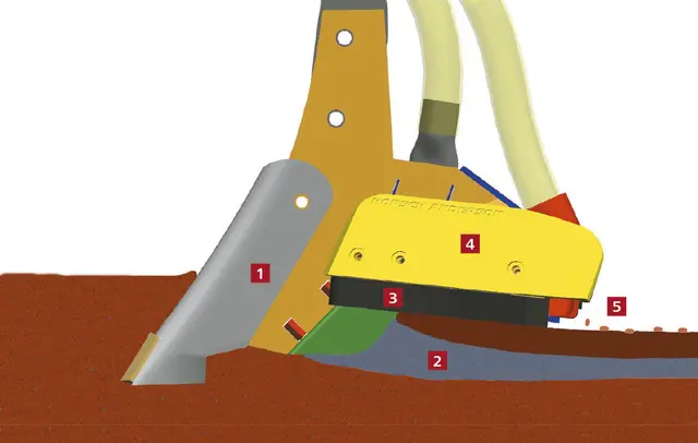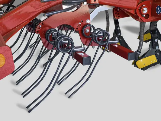 Сошники смонтированы на прочных стабильных стойках с блоком безопасности. Усилие срабатывания блока составляет более чем 200 кг. Таким образом, обеспечивается точное удержание сошника в горизонте посева и глубина заделки семян не изменяется даже на тяжёлых почвах и в экстремальных условиях работы. Сошники укладывают семена лентами. Штригельные бороны равномерно закрывают борозды. Каждая лента посева прикатывается одним колесом с шиной AS.