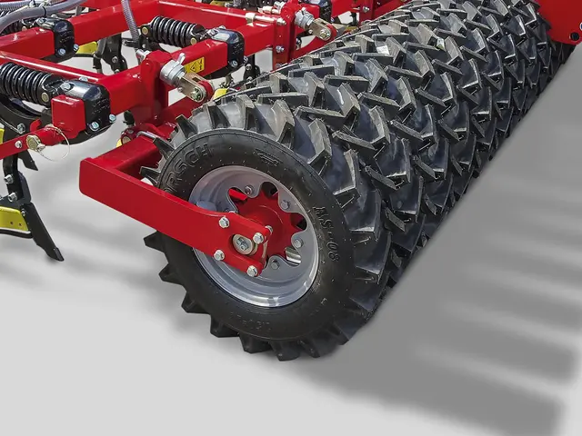 Колёса тандемного почвоуплотнителя смещены и благодаря такому расположению хорошо самоочищаются без скребков. « Елочный » рисунок протектора колёс и переменная деформация обеспечивает даже в чрезмерно влажных условиях их самоочистке.Средний сегмент тандемных колёс служит в качестве транспортного шасси по дороге. Дополнительный передний почвоуплотнитель усиливает измельчение комков и выравнивавание почвы, что в свою очередь положительно отражается на точном выдерживании горизонта посева.