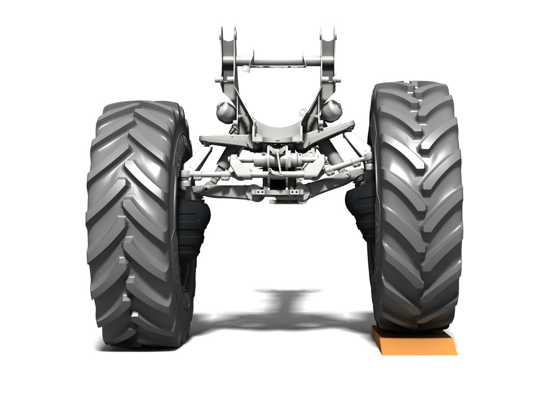 - Четыре одинаковых колеса диаметром до 2,18 м и шириной протектора до 71 см обеспечивают машине максимальную площадь опоры при адаптированном давлении.