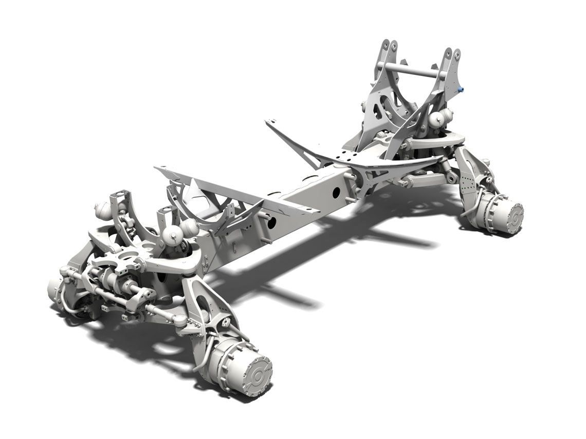 - Такая конструкция шасси располагает достаточным местом для монтажа бака объемом 8 000 л с развесовкой по осям 50 : 50.