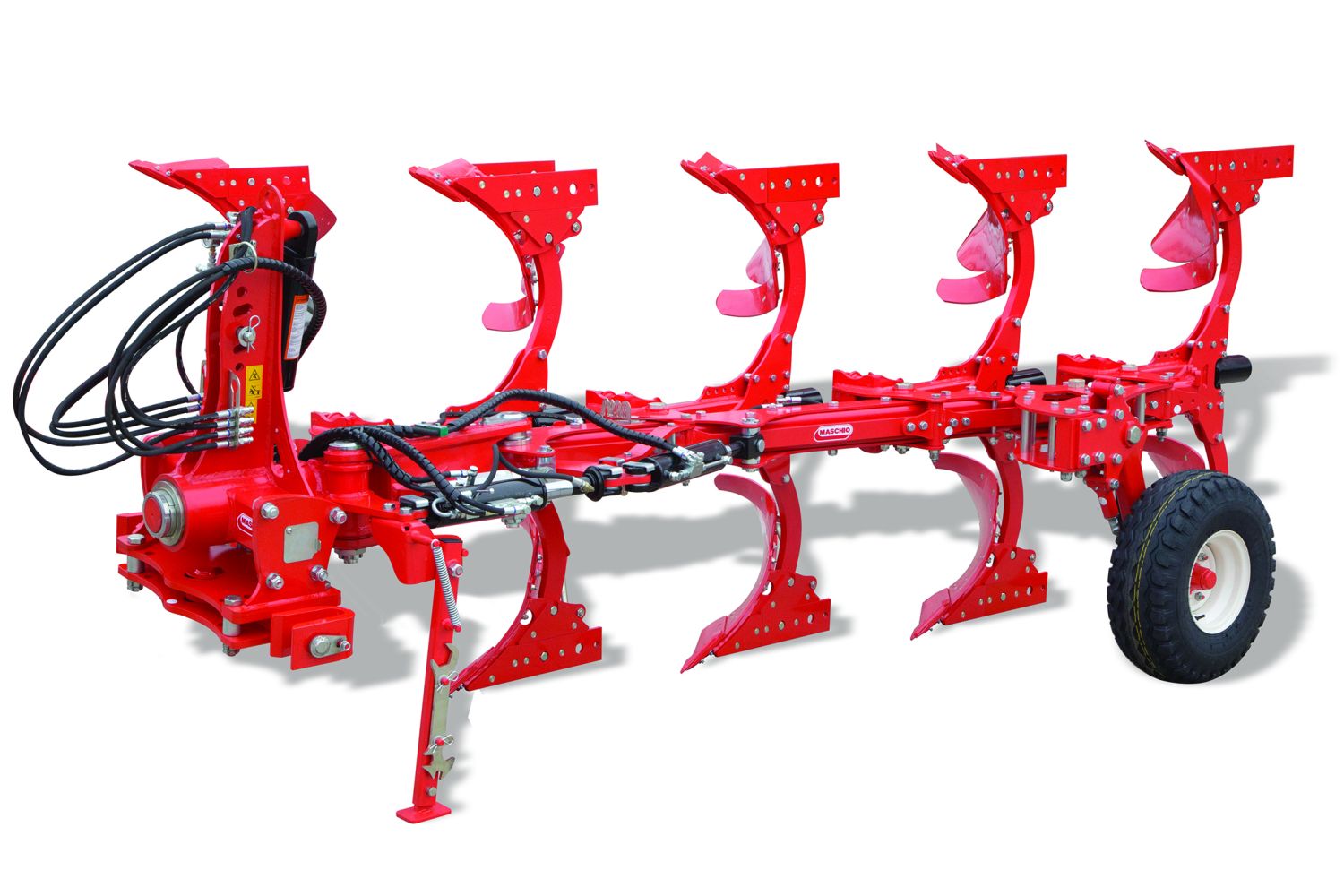 В дополнение к классической системе срезных болтов, существует возможность выбора версии NSH с системой безопасности Non-Stop Hydraulic. Гидравлические цилиндры, подсоединенные к задней части каждого корпуса плуга - с предварительным зарядом, который можно гидравлически регулировать из кабины - позволяют поднимать корпуса в случае удара, возвращая их в правильное положение, как только они преодолеют препятствие. Учитывая их рабочее положение за колесами трактора, первый и четвертый плужные корпуса имеют цилиндры с увеличенным диаметром, чтобы выдерживать большую нагрузку, учитывая более уплотненную почву, которую им приходится обрабатывать.