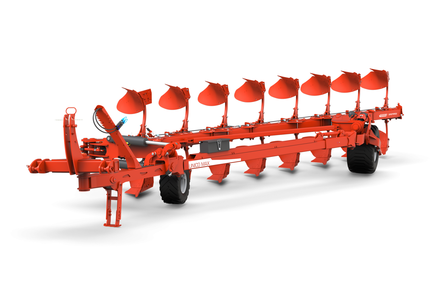 UNICO MAX, полунавесной оборотный плуг для вспашки по борозде или по полю с количеством корпусов от 6 до 9, отличается высоким качеством и технологиями, обеспечивающими чрезвычайно высокую производительность, включая многочисленные системы коррекции рабочего положения и безопасности для выполнения комбинированных задач по аэрации почвы и заделке растительных остатков. Доступный в конфигурации до 9 кузовов, он подходит для тракторов мощностью до 400 л.с.