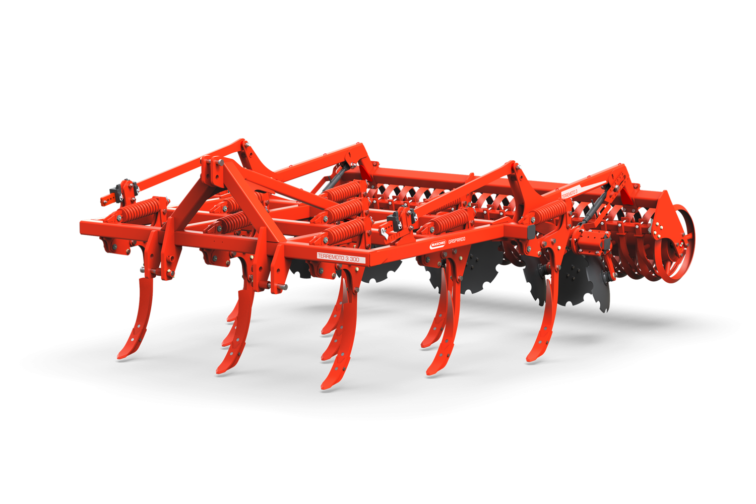 Вместе с задним рядом 520-миллиметровых дисков, установленных на амортизаторах с сайлент-блоками, орудие заделывает растительные остатки в почву, а задний каток выравнивает поверхность, закрывая все борозды. После прохождения TERREMOTO 3 земля тщательно подготовлена в любое время года, независимо от типа почвы: от глины до песка, от торфа до камня.