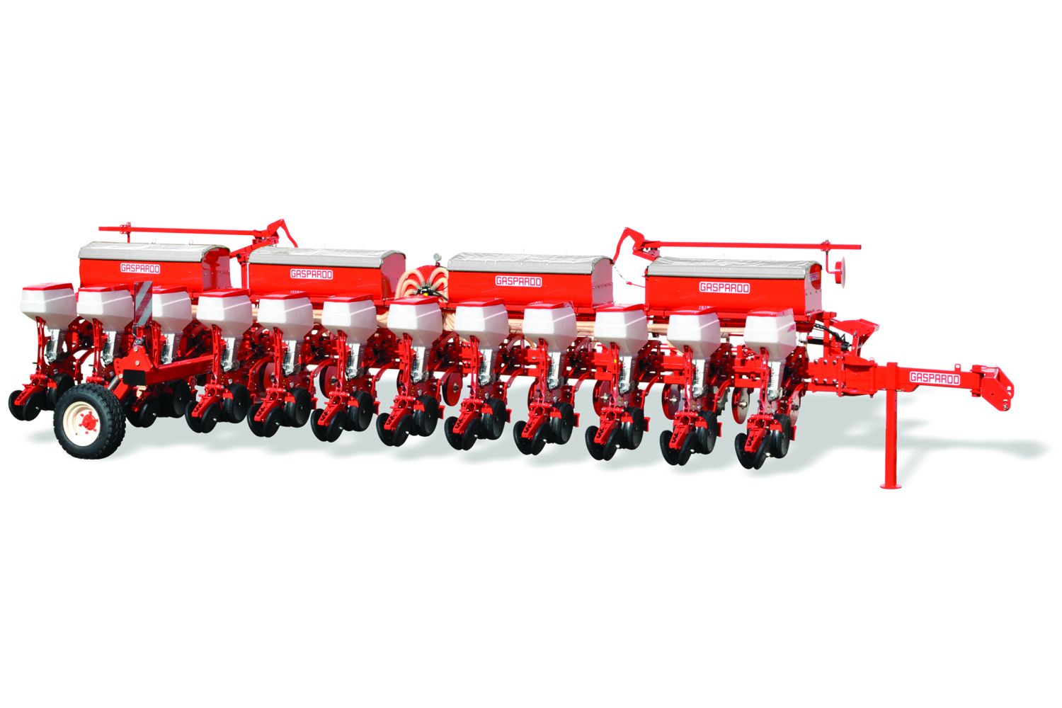 Высевающий элемент MTR характеризуется высокоуровневыми конструктивными решениями, такими как прочная двойная параллелограммная соединительная система с регулируемой нагрузочной пружиной, двухдисковый сошник, независимые колеса глубины, корпус распределителя из литого алюминия и большой бункер емкостью 36 л.