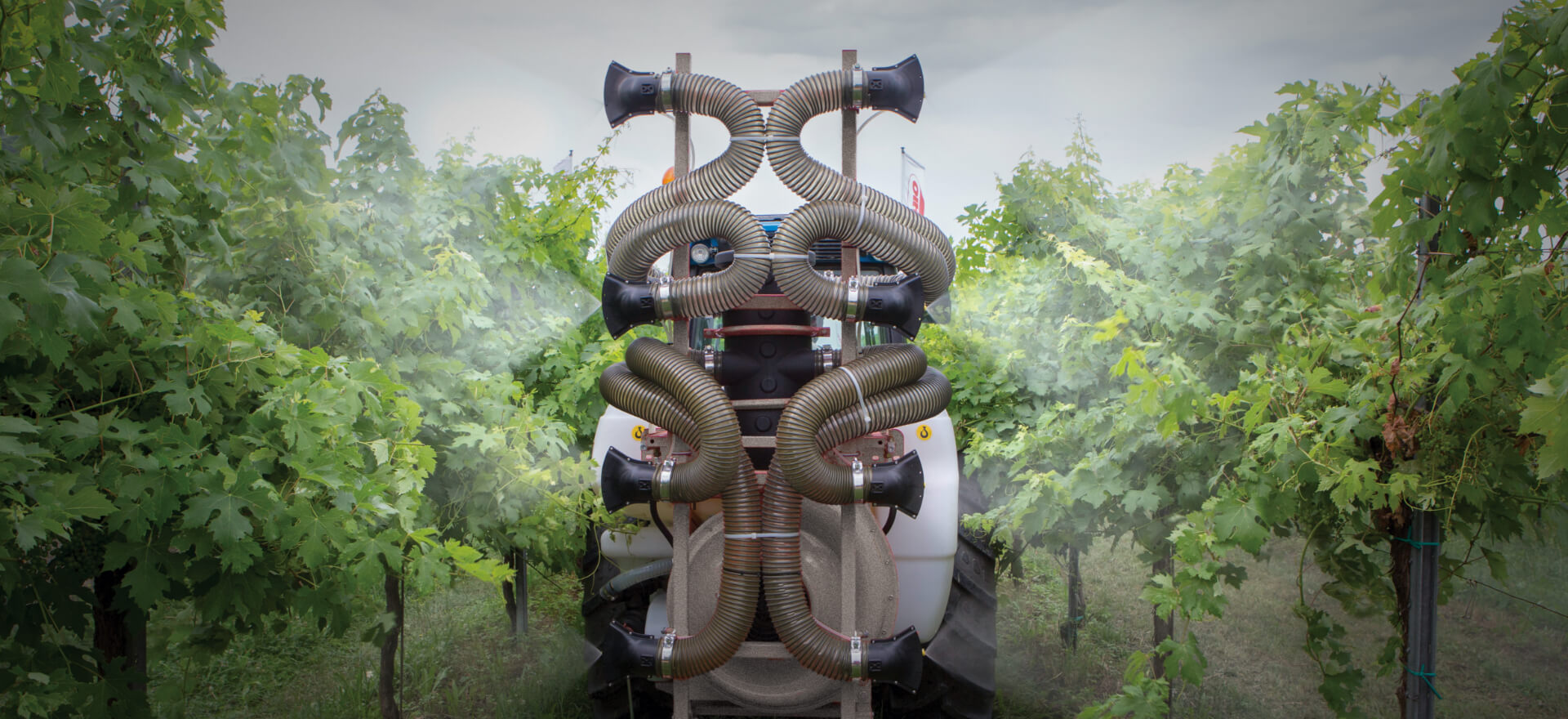 Максимальная эффективность обработки достигается благодаря системе дозирования малого объема и типу воздуховодов, которые локализуют поток на обрабатываемой поверхности. Малый объем дозирования достигается благодаря совместному действию механического распыления препарата с помощью насоса высокого давления и конкретной используемой насадки, а также пневматического аэрозольного распыления, осуществляемой вентилятором/диффузором. Помимо направления потока в нужном направлении пневматические транспортеры обеспечивают больший контроль над высотой обработки, в том числе благодаря возможности исключения отдельных форсунок. Для увеличения охвата обработки и дальнейшего снижения риска диффузного загрязнения по запросу поставляется комплект ELECTROSTATIC, который благодаря электродам, расположенным на выходе из воздухораспределителя, положительно заряжает капли потока препарата, так что они притягиваются к растительности, имеющей естественный отрицательный заряд.