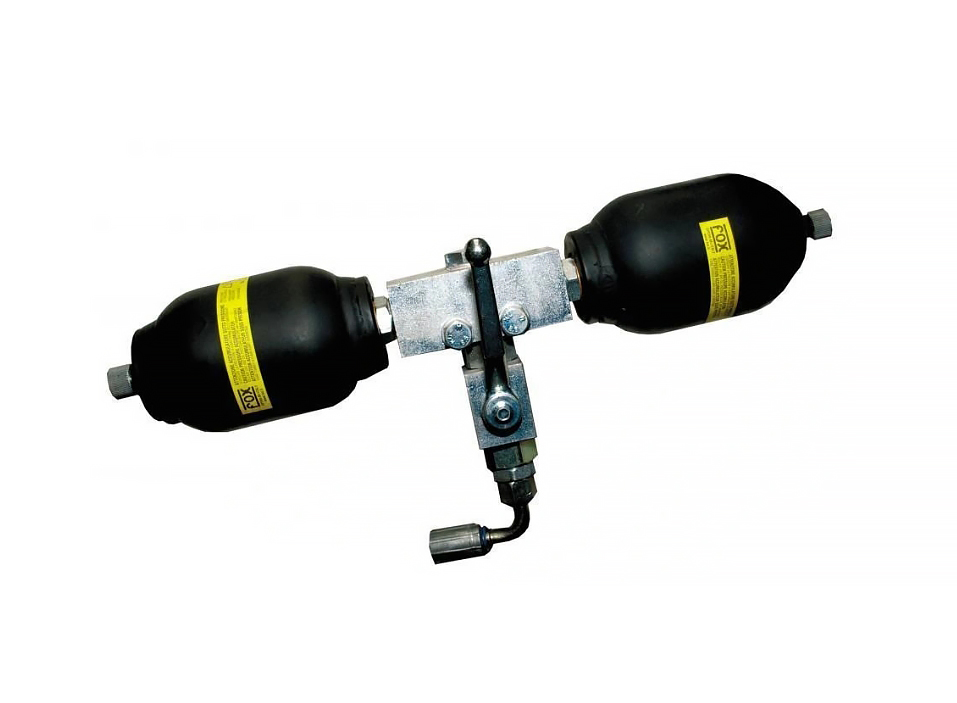 Аккумулятор-виброгаситель (гидрокомпенсатор) - это антиударный гидравлический амортизатор 24HA. Уменьшает давление на гидросистему трактора, что влияет на комфортную управляемость фронтального погрузчика и долговечность гидросистемы трактора.