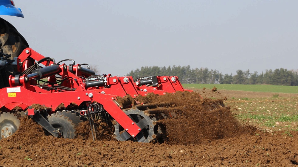 Установлены 48 прочных и долговечных дисков, устойчивых к механическим повреждениям. Два ряда дисков обеспечивают максимум производительности. Максимальная рабочая глубина обработки почвы до 18 сантиметров. Ширина обработки составляет 6 метров, что подходит для средних и крупных фермерских хозяйств. Доступна возможность гибкой настройки дискового культиватора. Агрегатируется с отечественной и зарубежной техникой.