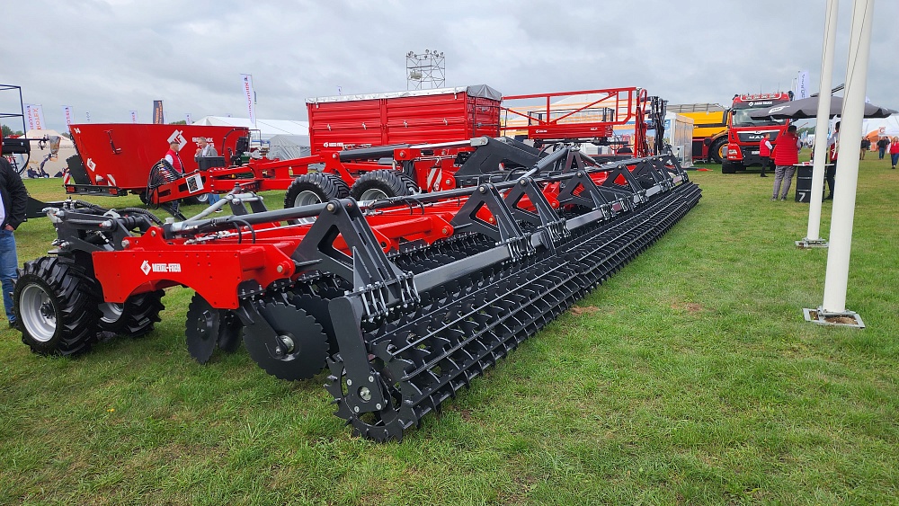 Обратный звонокДискатор Metal-Fach U710 12,5 метров - это тяжелая двухрядная дисковая борона, предназначенная для основной и предпосевной обработки почвы на глубину до 15 см, эффективного рыхления, уничтожения сорняков, измельчения пожнивных остатков и подготовки земли к посеву.