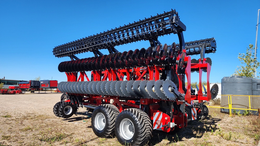 Ключевая особенность — высокая производительность благодаря широкой рабочей ширине захвата, индивидуальным стойкам для каждого диска и увеличенному расстоянию между рядами обеспечивает лучшее перемешивание почвы с растительностью, снижение сопротивления и предотвращение забивания.