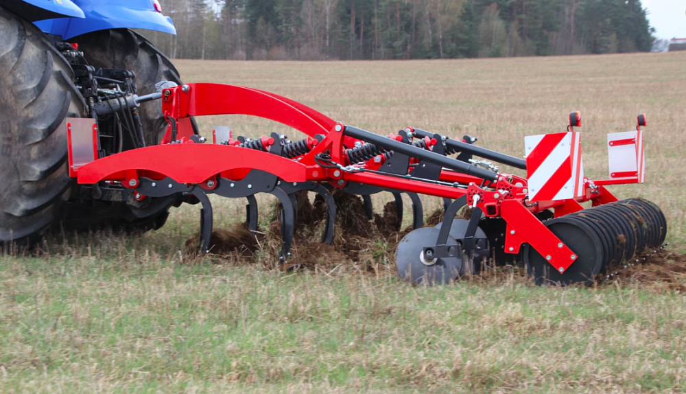 Установлено 8 надёжных и долговечных дисков, устойчивых к износу. Рассчитаны на продолжительную эксплуатацию. Применение стерневого тракторного культиватора позволяет выполнять обработку почвы на глубину до 30 сантиметров. Применяется навесная жёсткая рама. Ширина обработки почвы составляет 3,5 метра.