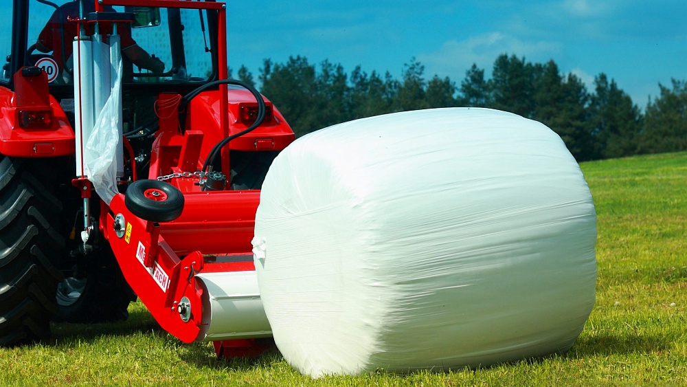Модель обмотчика рулонов позволяет оперативно выполнить подбор прессованных рулонов травы, сена и прочих травяных культур на поле. Экономит время и трудовые ресурсы. Специальный механизм обеспечивает высокое качество обмотки рулона без пропусков. Диаметр рулона до 1,2 метра. Максимальный вес прессованного рулона составляет 800 кг. Средняя время обмотки одного рулона 1,3 минуты.