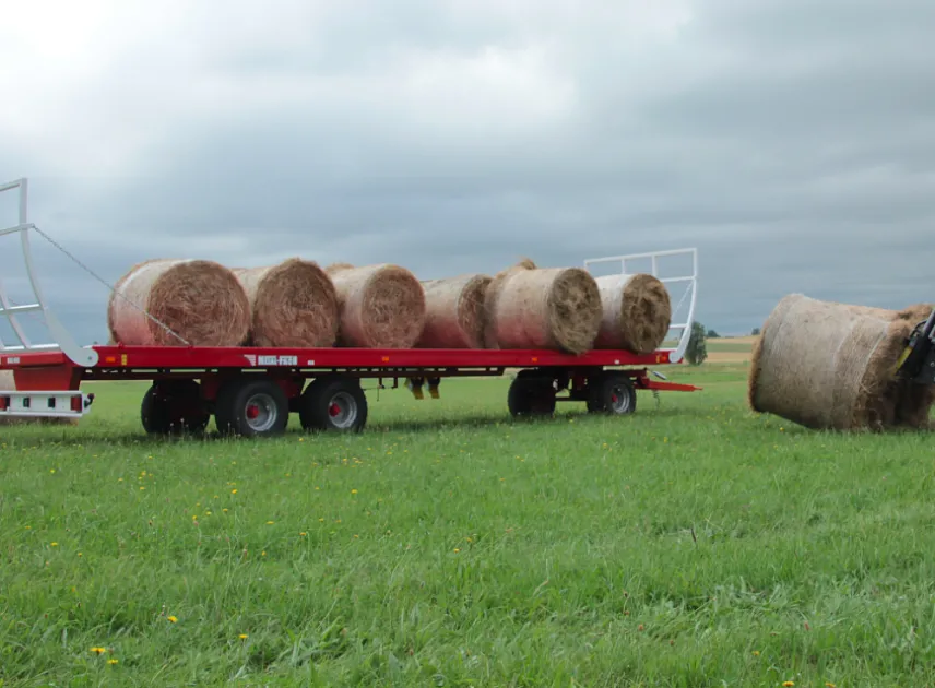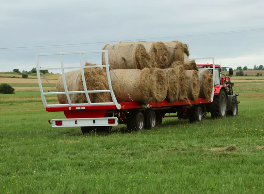 Подходит для любой модели трактора. Обеспечивает безопасную перевозку большого количества рулонов сена или соломы. Позволяет провести заготовку кормов в сжатые сроки. Модель платформенного прицепа для трактора пользуется популярностью среди небольших фермерских хозяйств и крупных агрохолдингов.