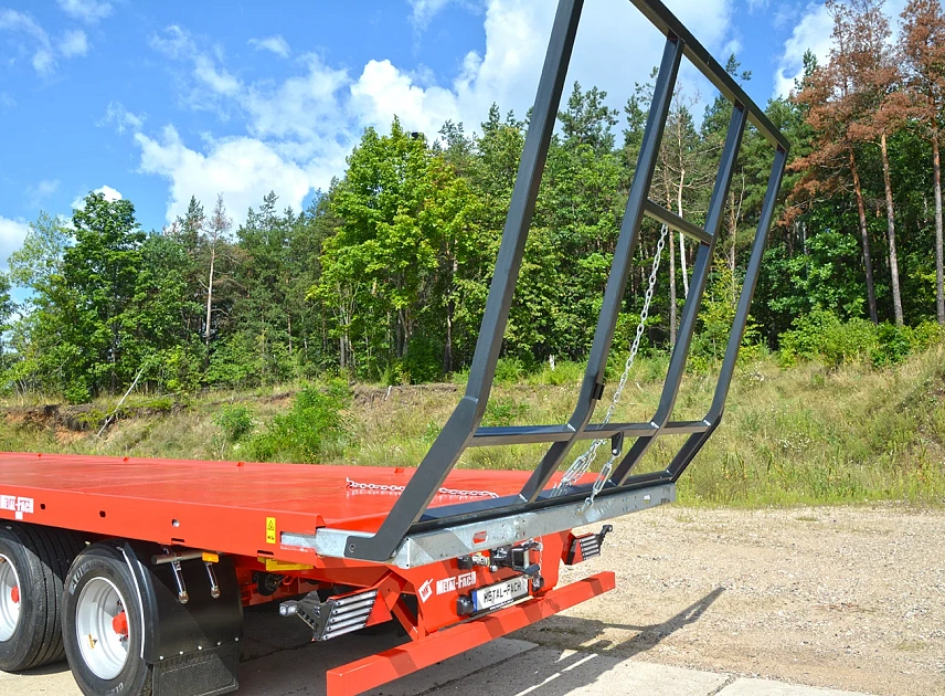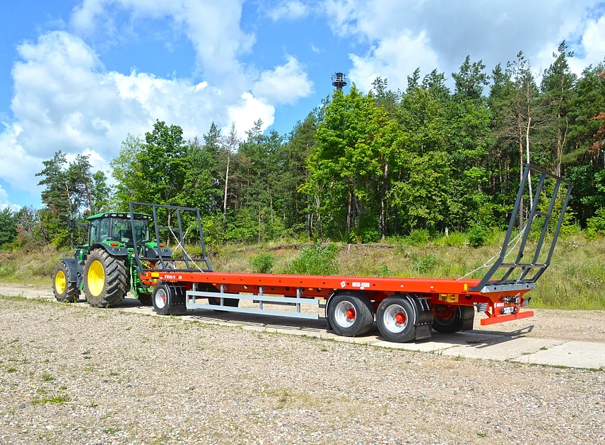 Тракторный платформенный прицеп создан с использованием качественного металла, прошедшего специальную антикоррозийную обработку. Позволяет перевозить за один раз большое количество рулонов сена или соломы. Модель прицепа платформенного обеспечивает грузоподъёмность в 14 тонн.