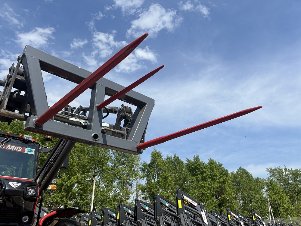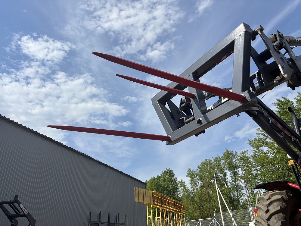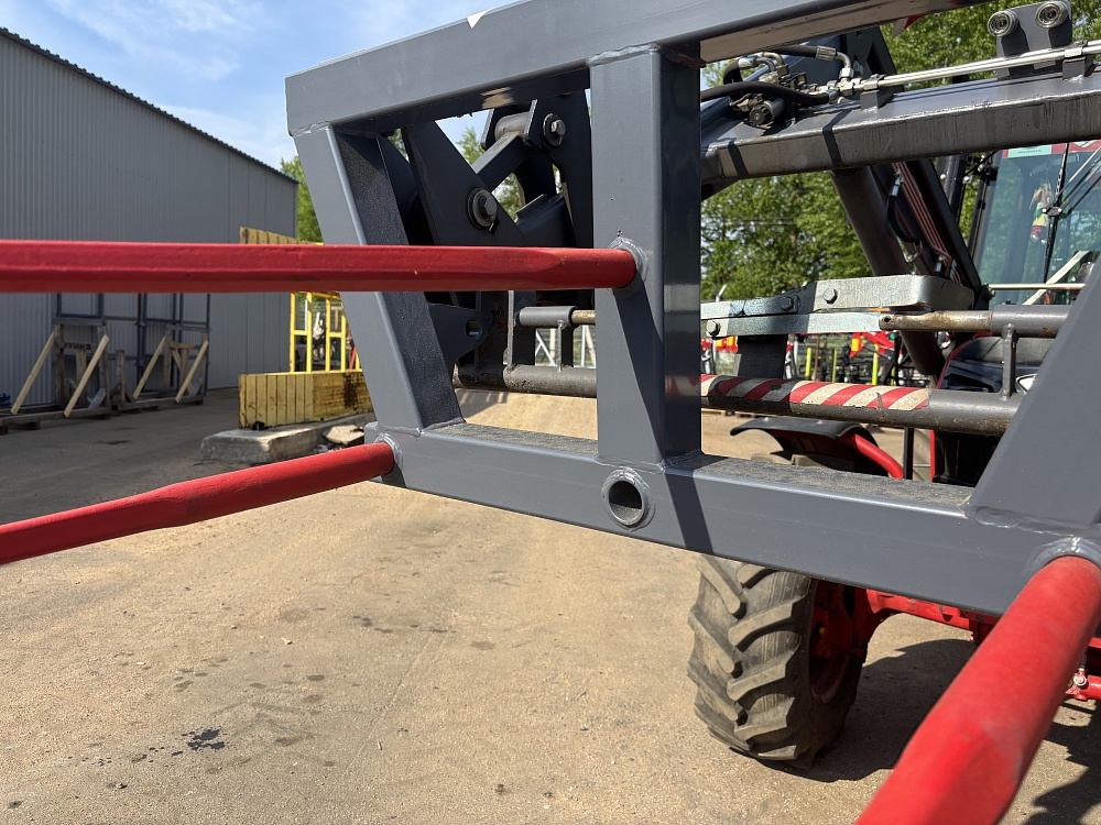 Грузоподъёмность составляет 1 тонну. Установлены 3 пальца для фиксации рулона. Установка и съём занимает минимальное количество времени. Вилы для рулонов тракторные рассчитаны на продолжительный срок службы. Повышают производительность и функциональность техники. Установлены прочные зубья и крепления.