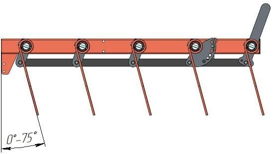 - Широкий диапазон регулировки угла атаки зуба от 0º до 75º позволяет использовать орудие на различных операциях от сбора соломы и разрушения почвенной корки до деликатного послевсходового боронования.