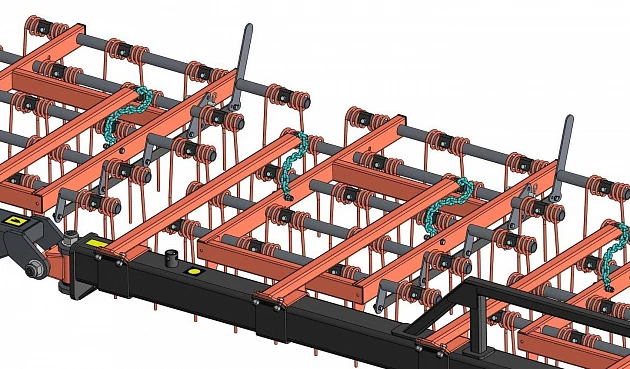 - Полное копирование почвы рабочими секциями за счёт их свободного подвешивания на цепях.