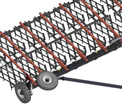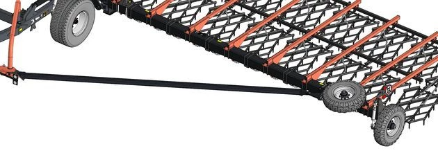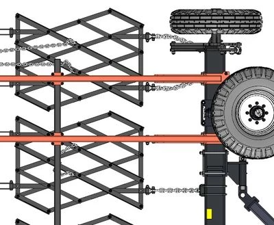 Широкие колёса на сцепке (базе) не дают боронам проваливаться, они более устойчивы в работе.