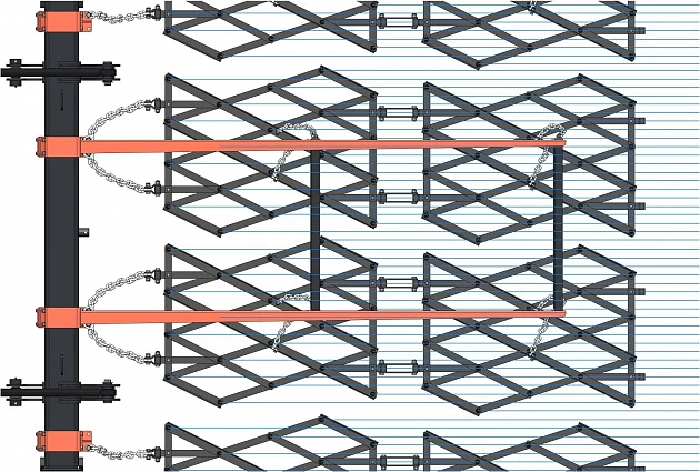 В конструкции нет тросового фиксатора замка вместо этого используются гидравлические замки, поэтому нет опасности несанкционированного открытия замка при работе агрегата, например, при развороте.
