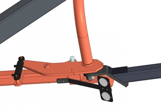 - В конструкции КП нет традиционного для многих производителей тросового фиксатора замка, вместо этого используются гидравлические замки, поэтому нет опасности несанкционированного открытия замка при работе агрегата, например, при развороте.