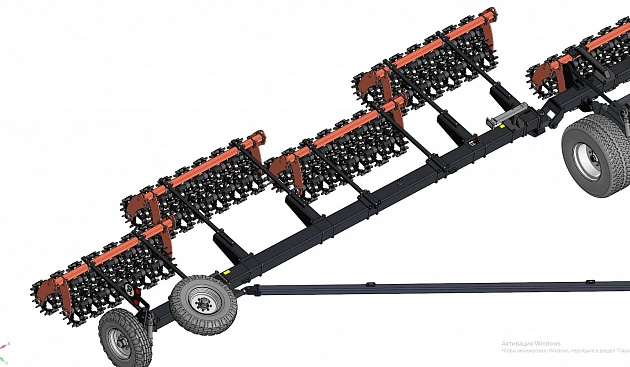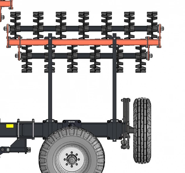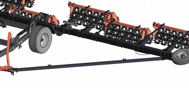 - Рессорная подвеска секций на крайних брусьях позволяет им копировать неровности поля.