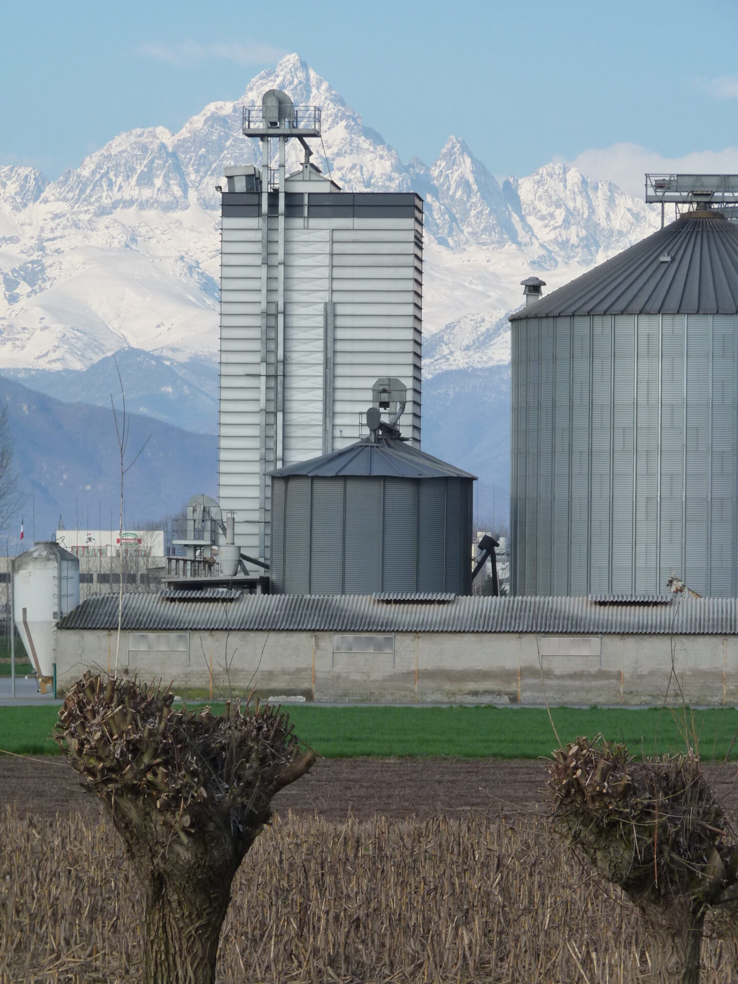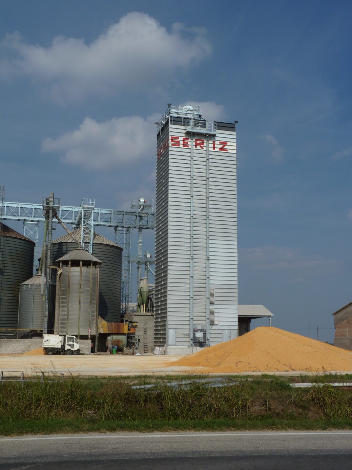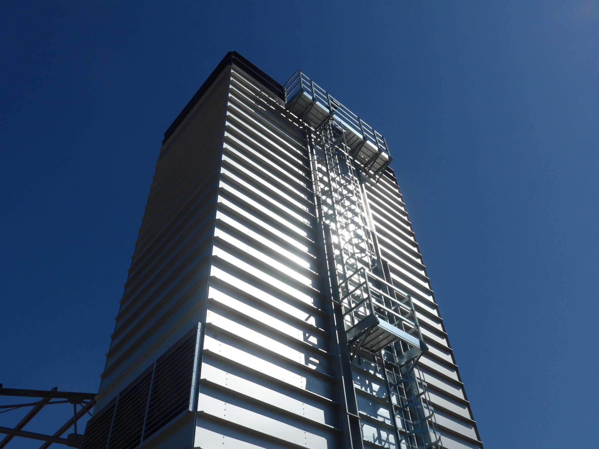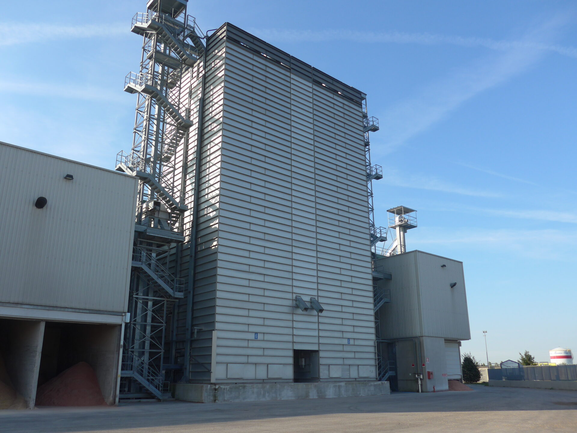 — Сушильная башня со ступенчатыми тоннелями из стали ALUZINK; вытяжные тоннели верхней части сушилки из нержавеющей стали; внутренняя обшивка панелями из стали ALUZINK.