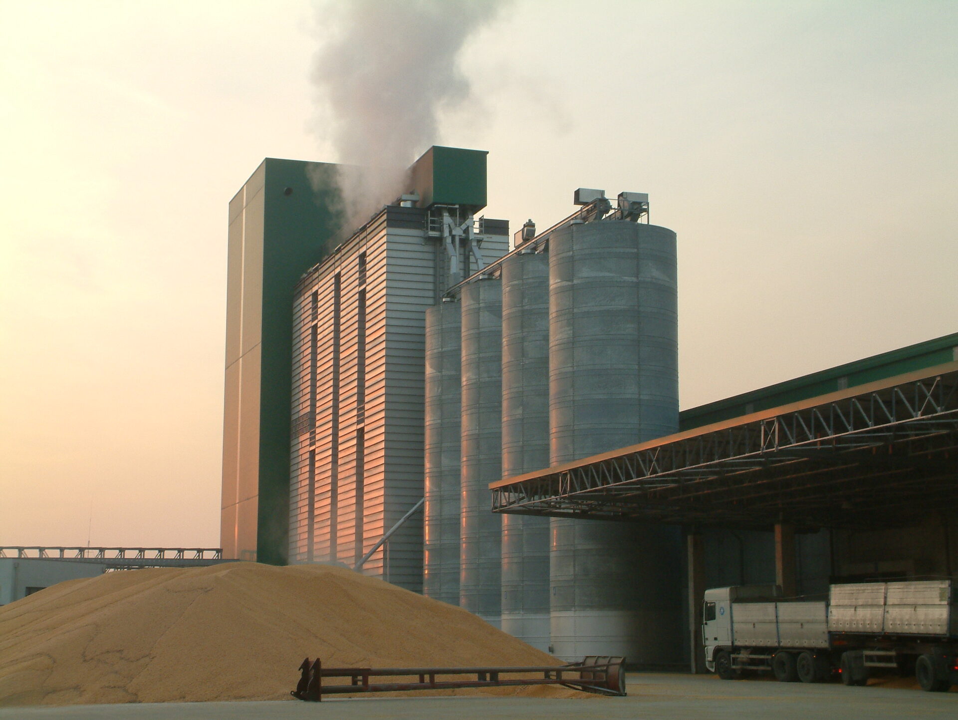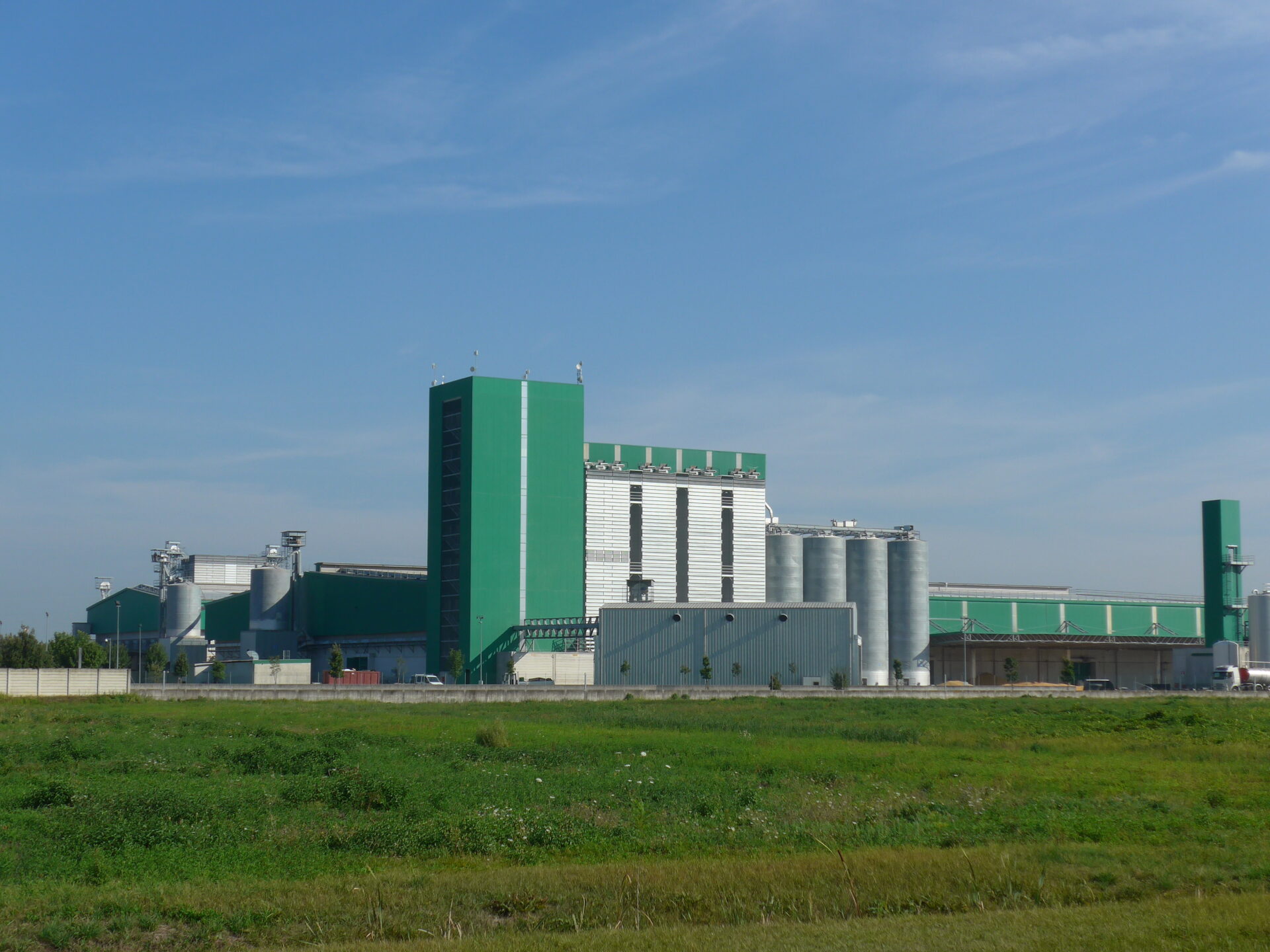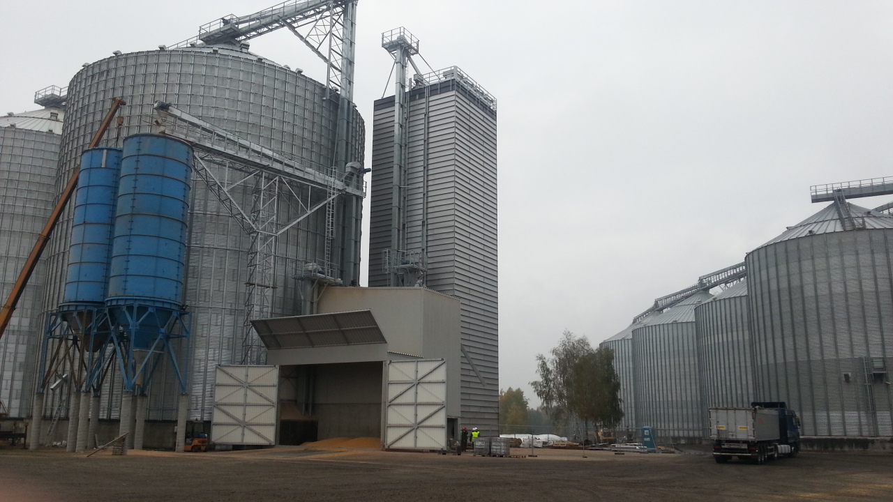 — Сушильная башня со ступенчатыми тоннелями из стали ALUZINK; вытяжные тоннели верхней части сушилки из нержавеющей стали; внутренняя обшивка панелями из стали ALUZINK.