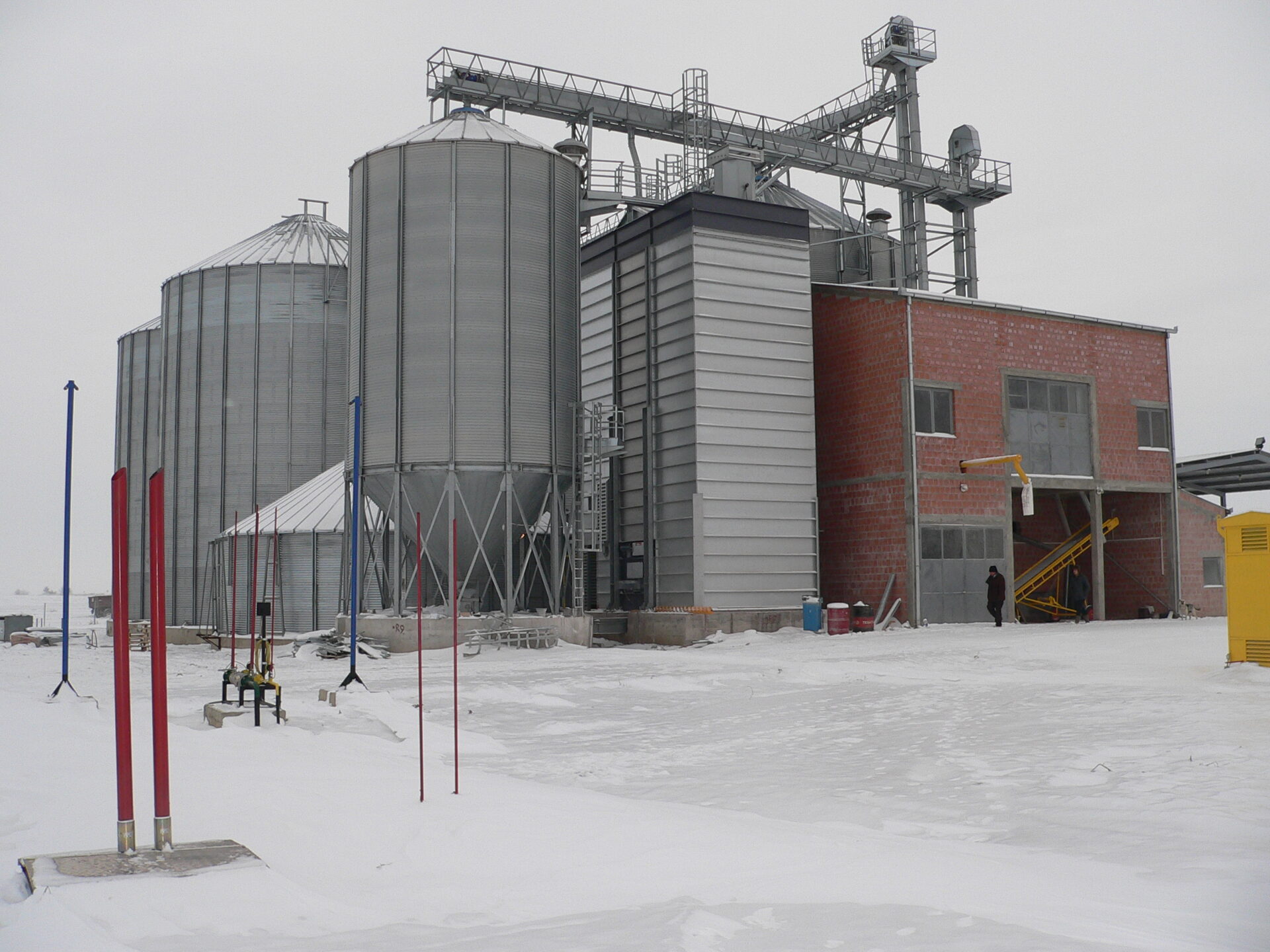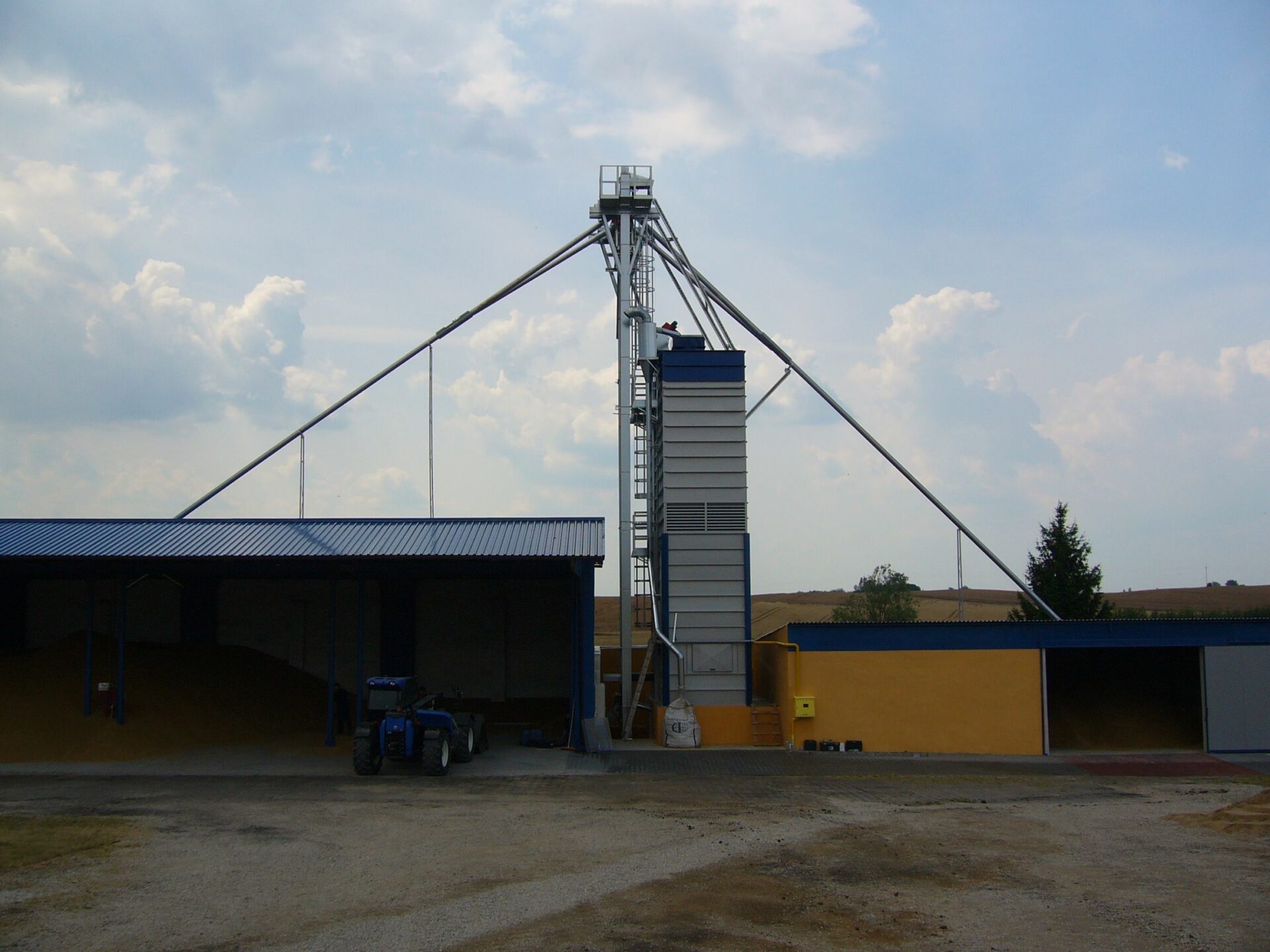 — Сушильная башня со ступенчатыми тоннелями из стали ALUZINK; вытяжные тоннели верхней части сушилки из нержавеющей стали; внутренняя обшивка панелями из стали ALUZINK.