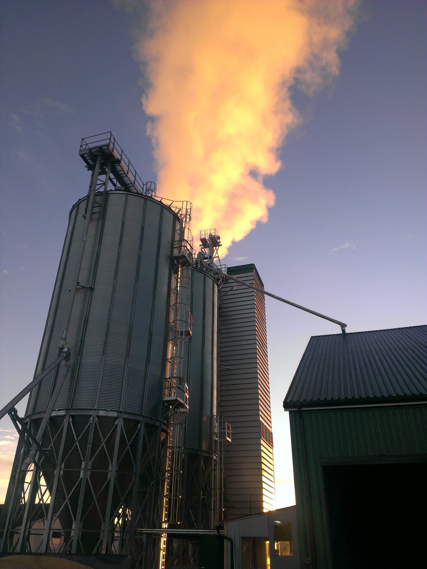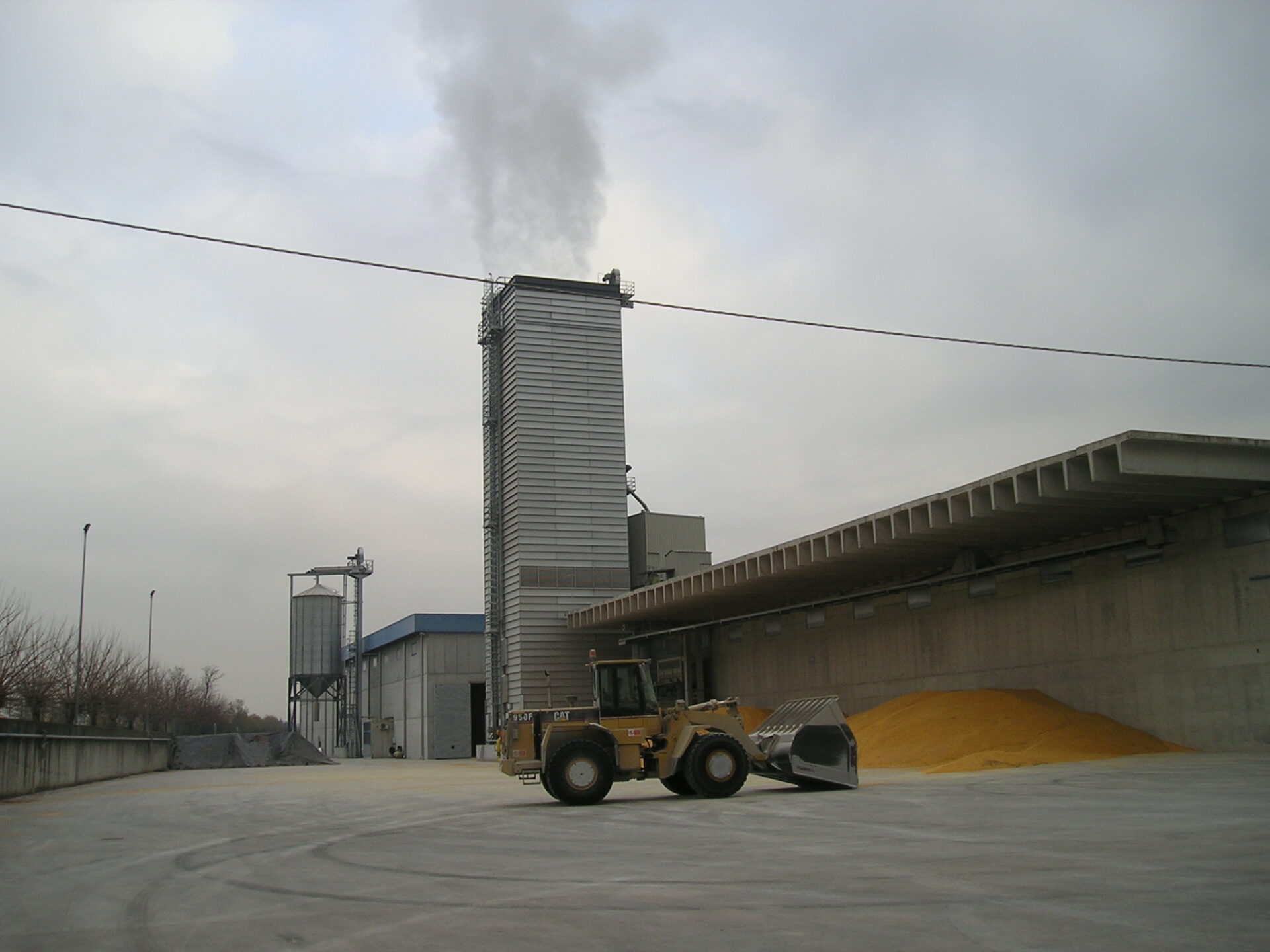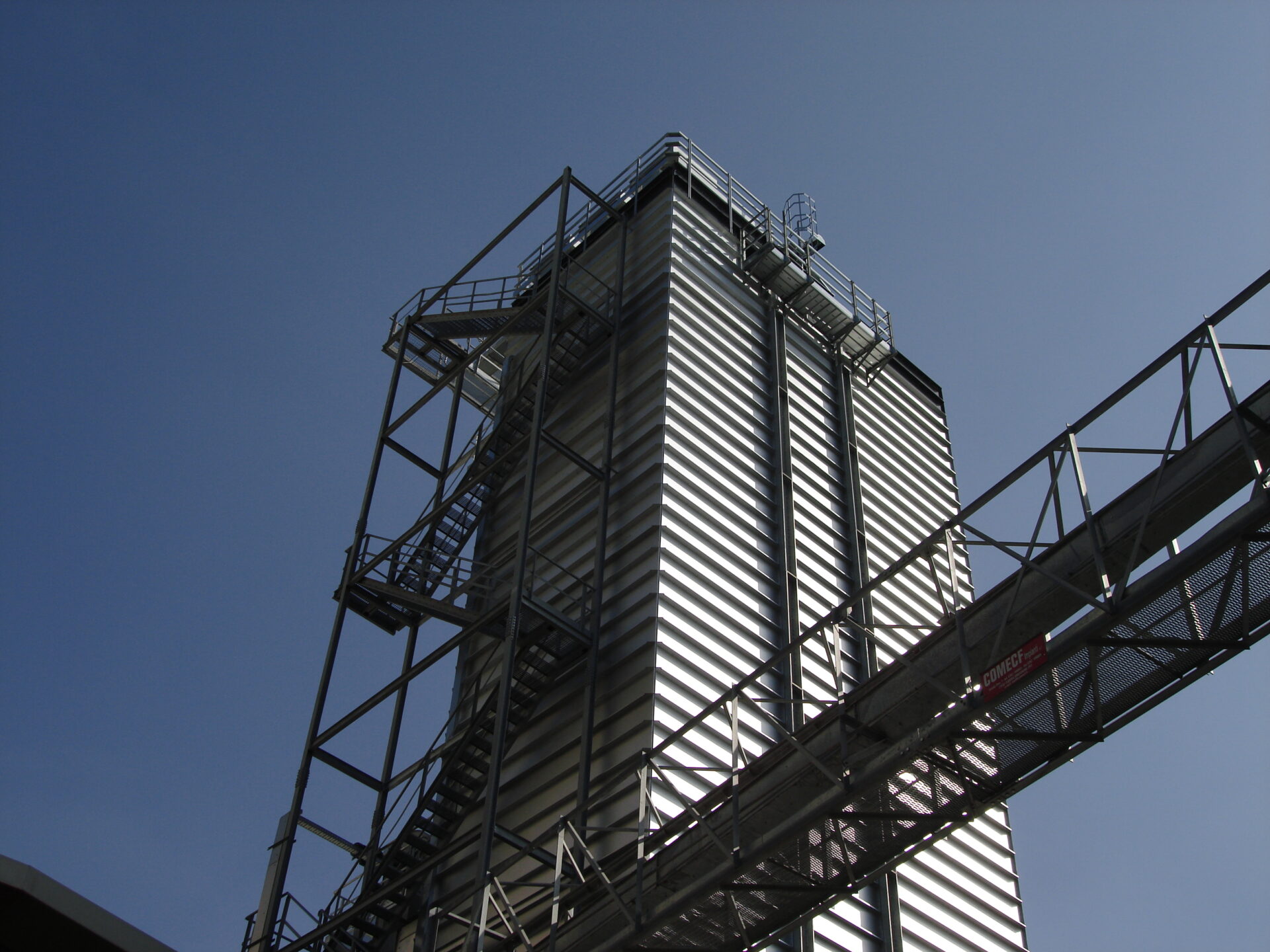 — Сушильная башня со ступенчатыми тоннелями из стали ALUZINK; вытяжные тоннели верхней части сушилки из нержавеющей стали; внутренняя обшивка панелями из стали ALUZINK.