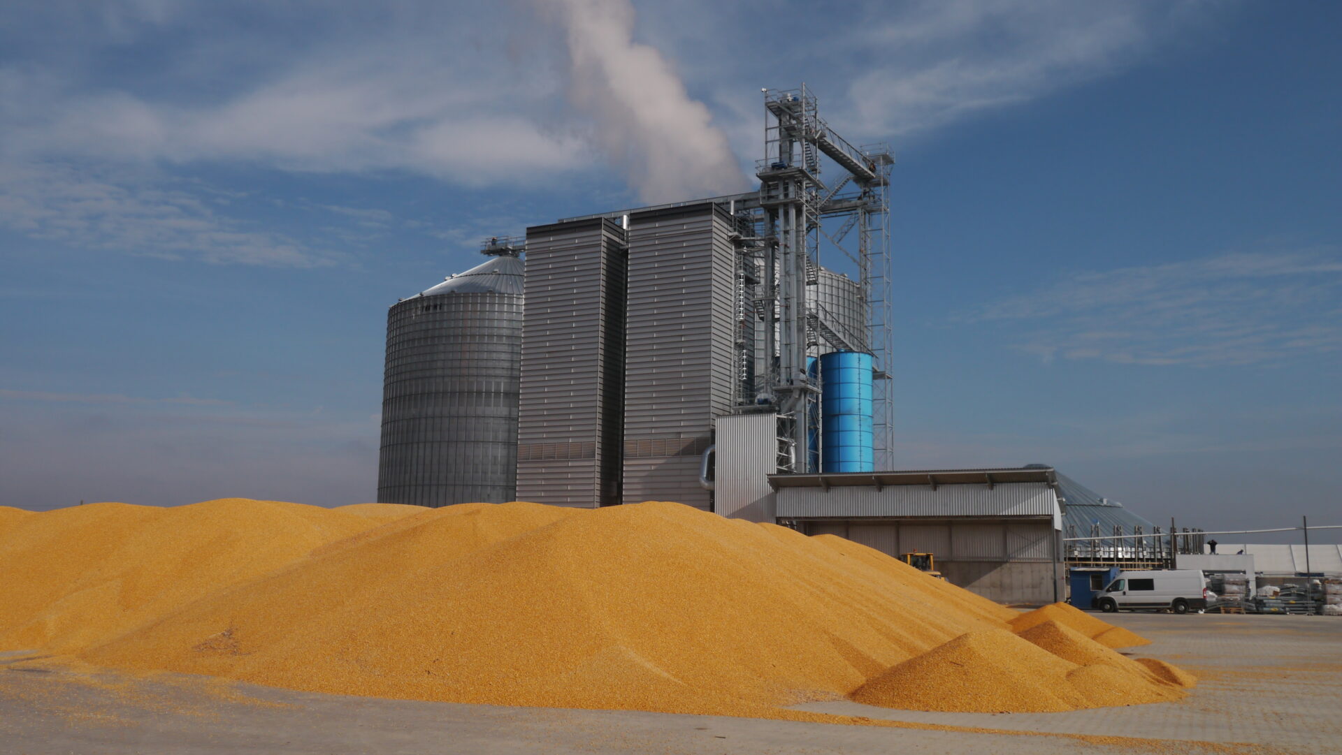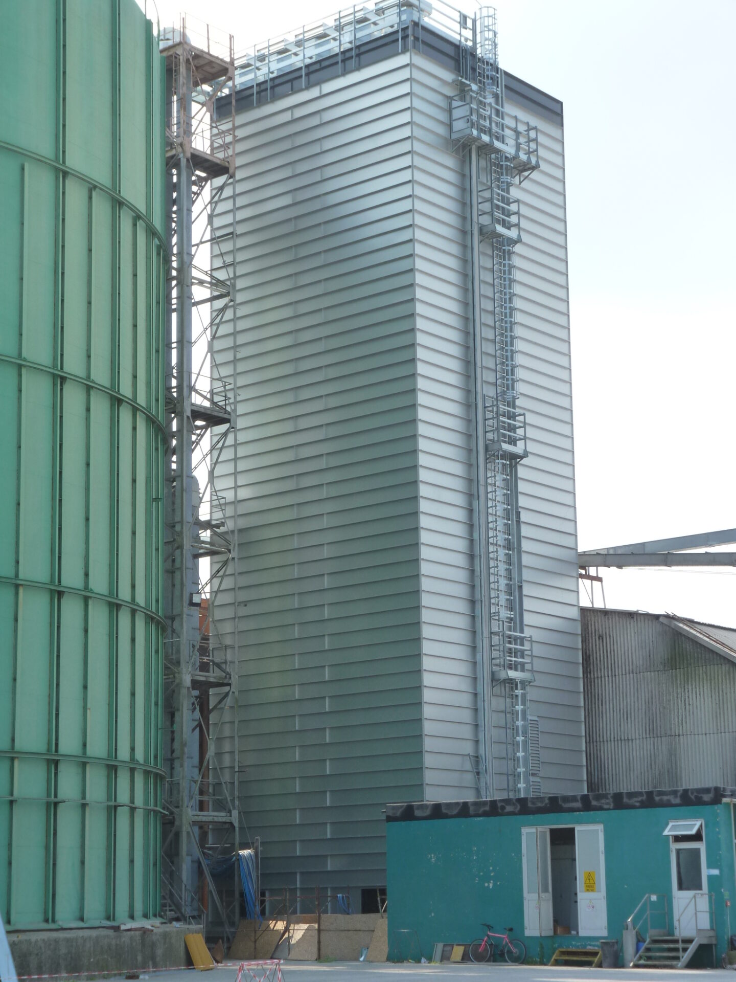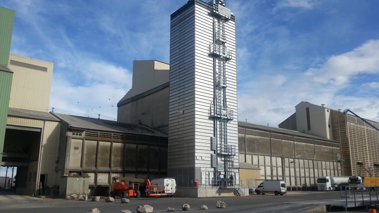 — Сушильная башня со ступенчатыми тоннелями из стали ALUZINK; вытяжные тоннели верхней части сушилки из нержавеющей стали; внутренняя обшивка панелями из стали ALUZINK.