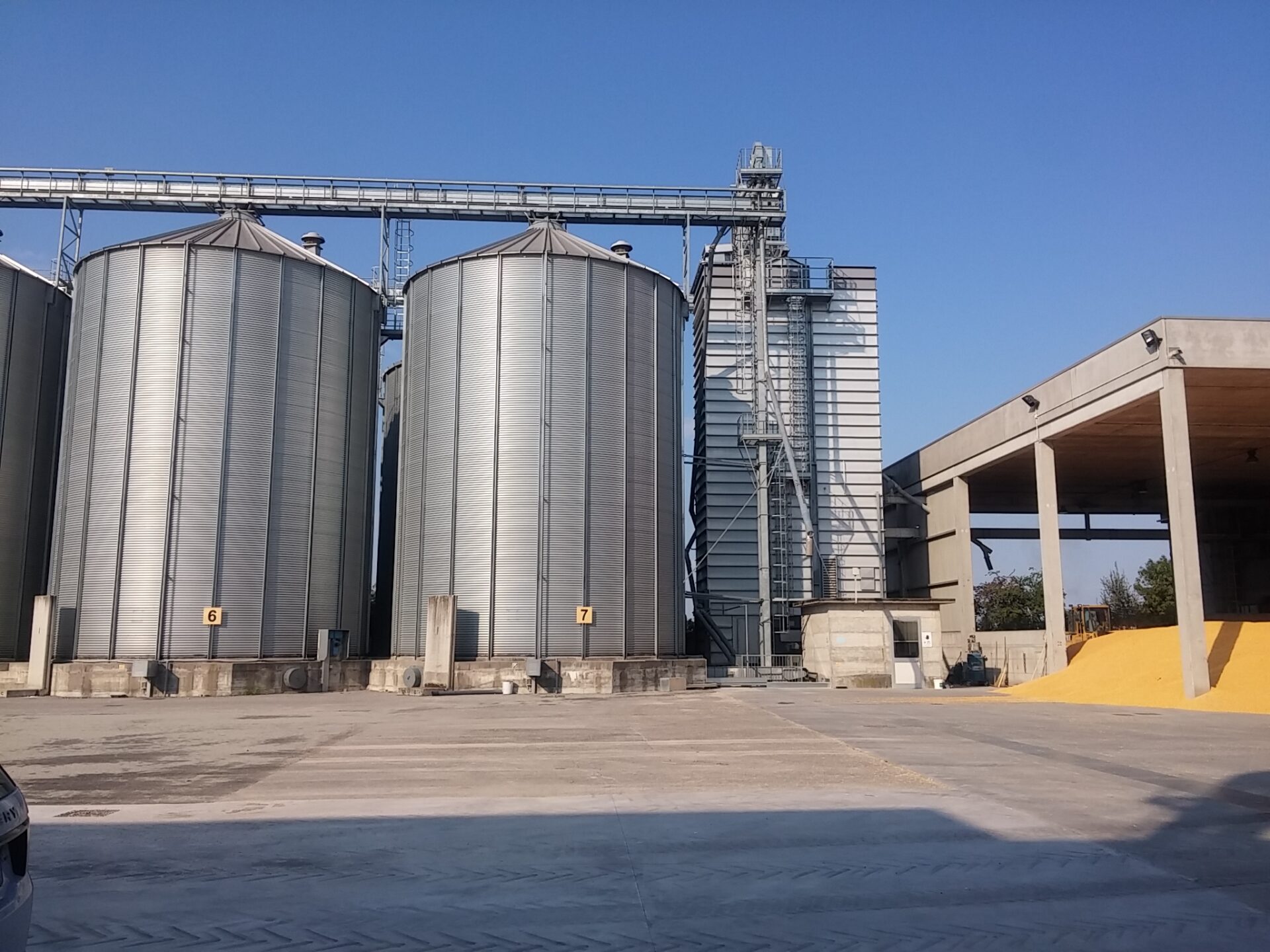 — Загрузочный бункер для влажного зерна с крышей.