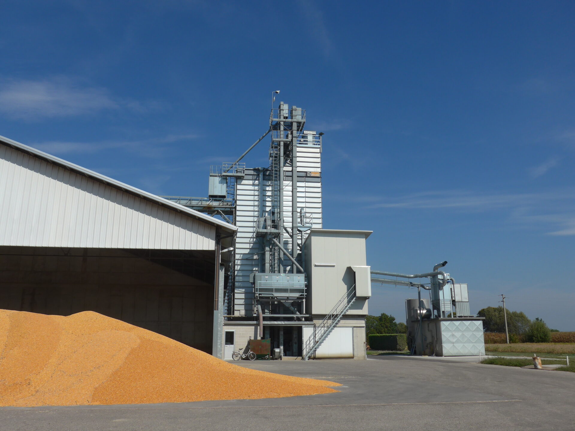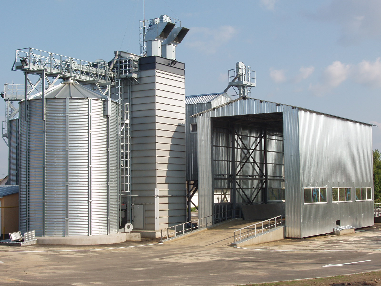 — Сушильная башня со ступенчатыми тоннелями из стали ALUZINK; вытяжные тоннели верхней части сушилки из нержавеющей стали; внутренняя обшивка панелями из стали ALUZINK.