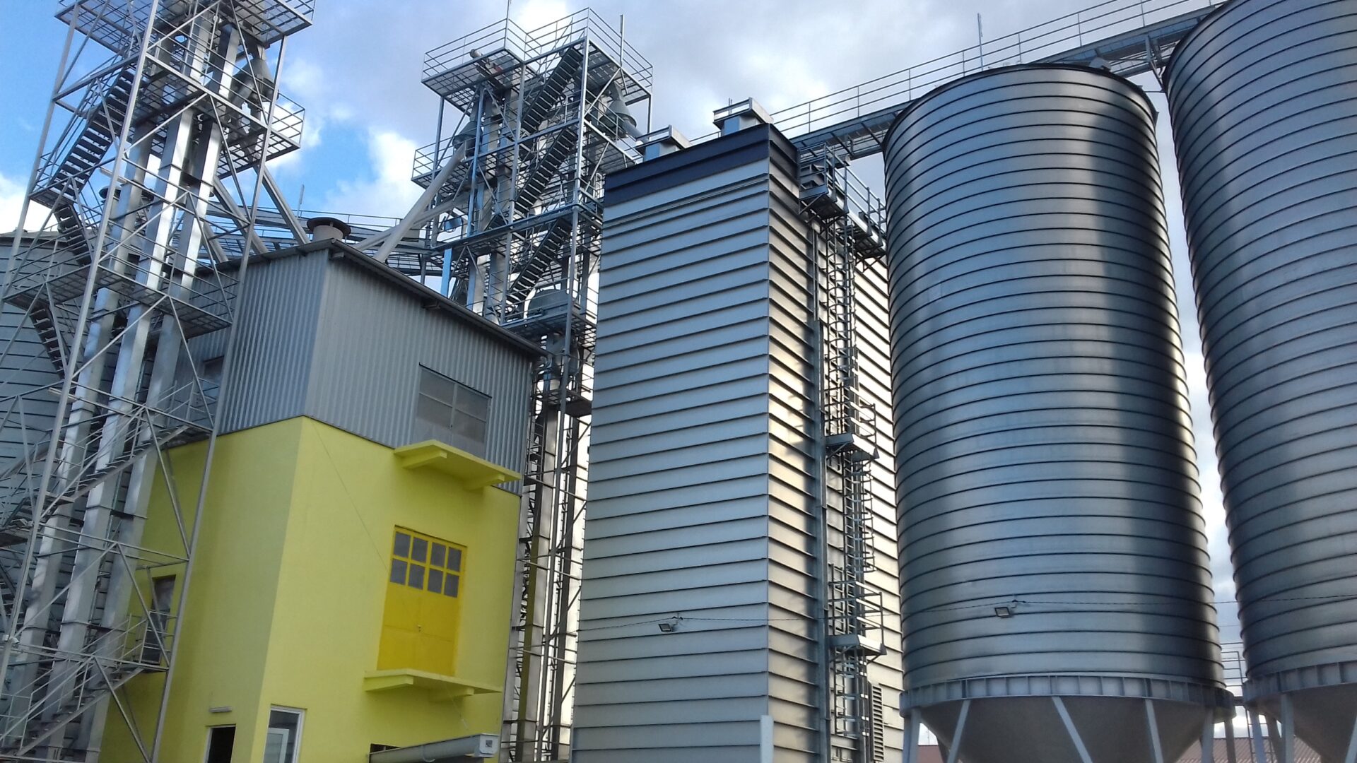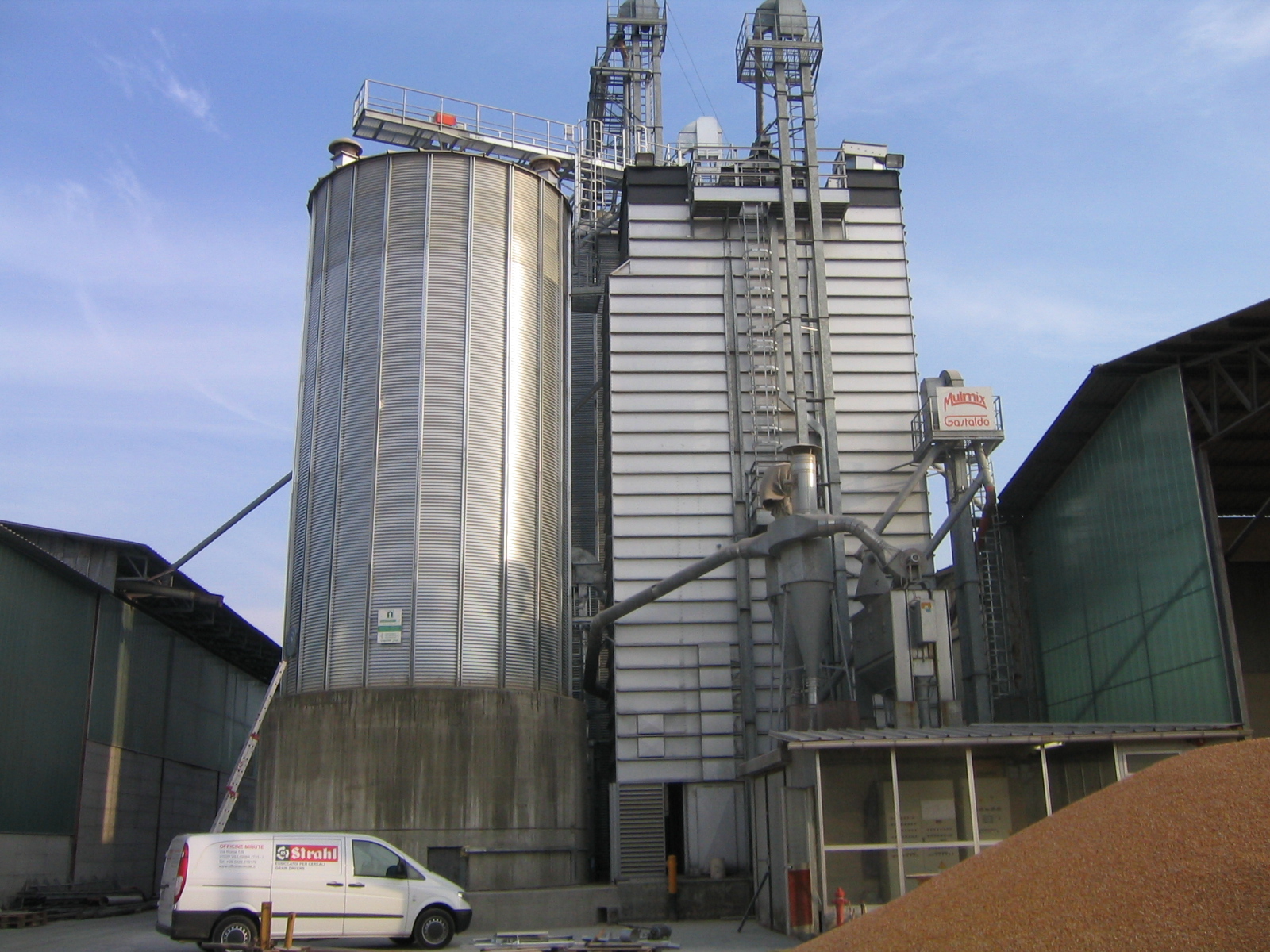 — Сушильная башня со ступенчатыми тоннелями из стали ALUZINK; вытяжные тоннели верхней части сушилки из нержавеющей стали; внутренняя обшивка панелями из стали ALUZINK.