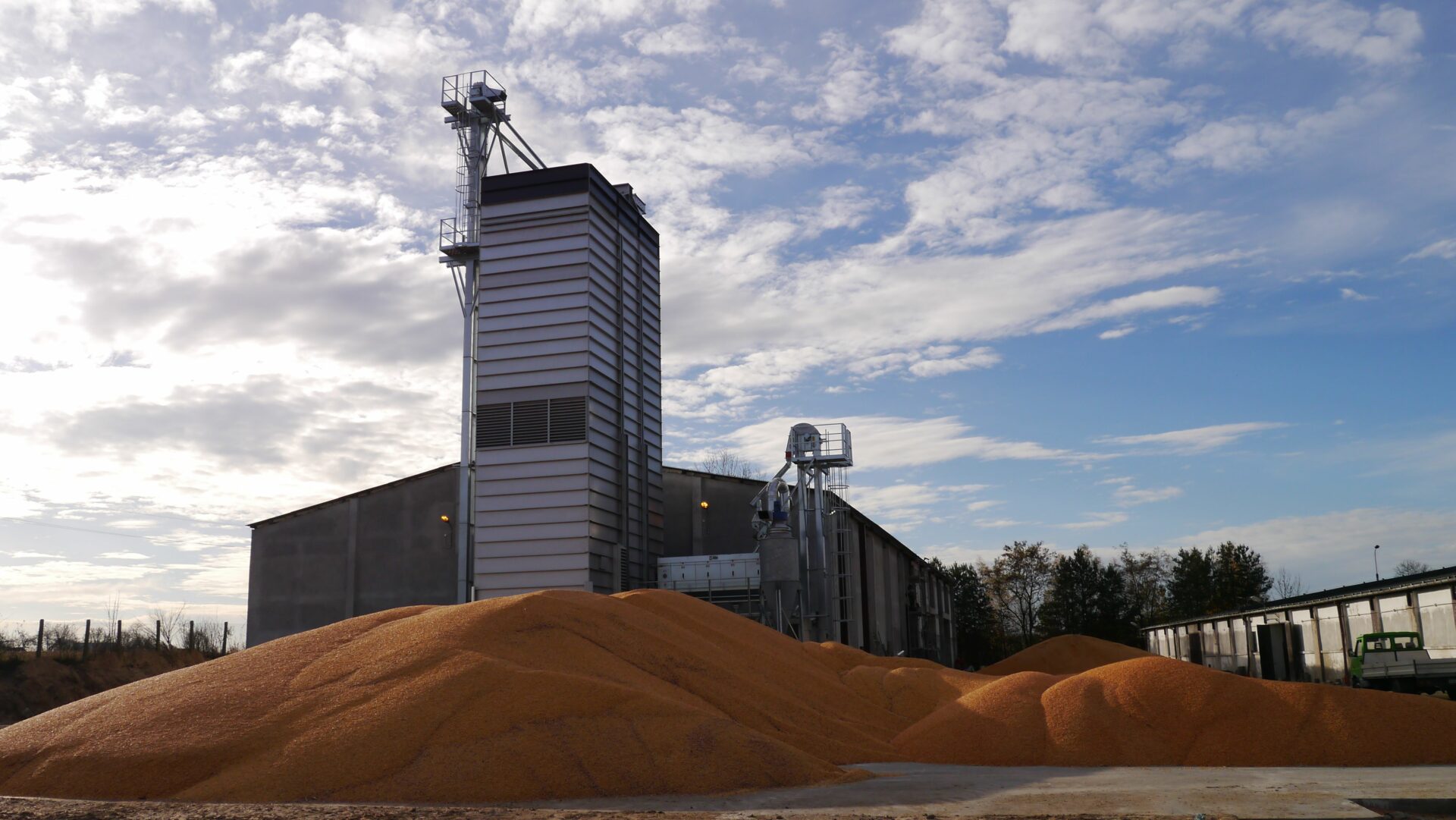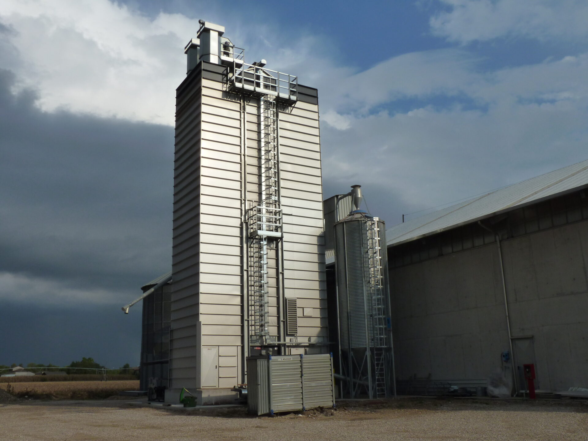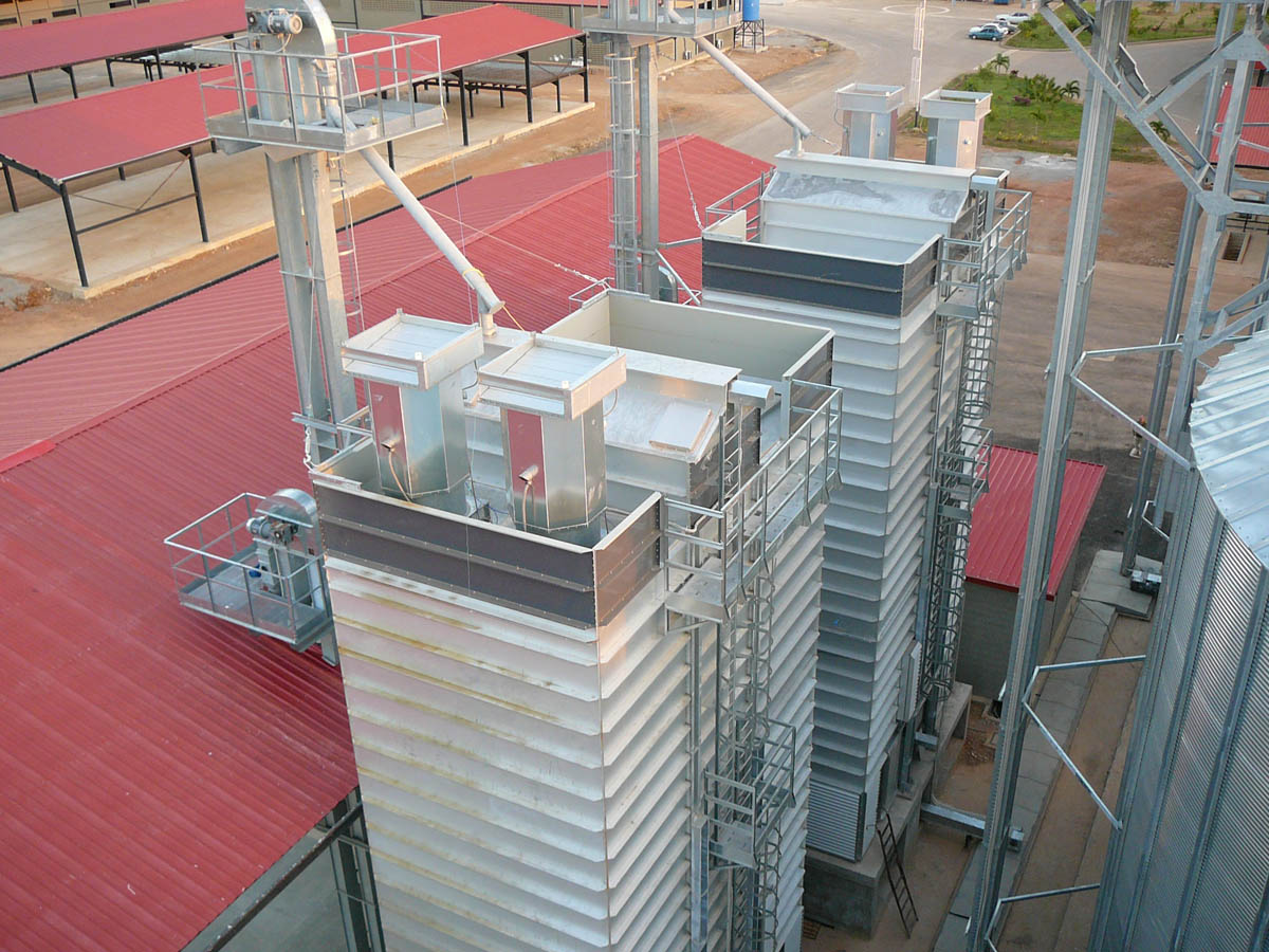 — Сушильная башня со ступенчатыми тоннелями из стали ALUZINK; вытяжные тоннели верхней части сушилки из нержавеющей стали; внутренняя обшивка панелями из стали ALUZINK.