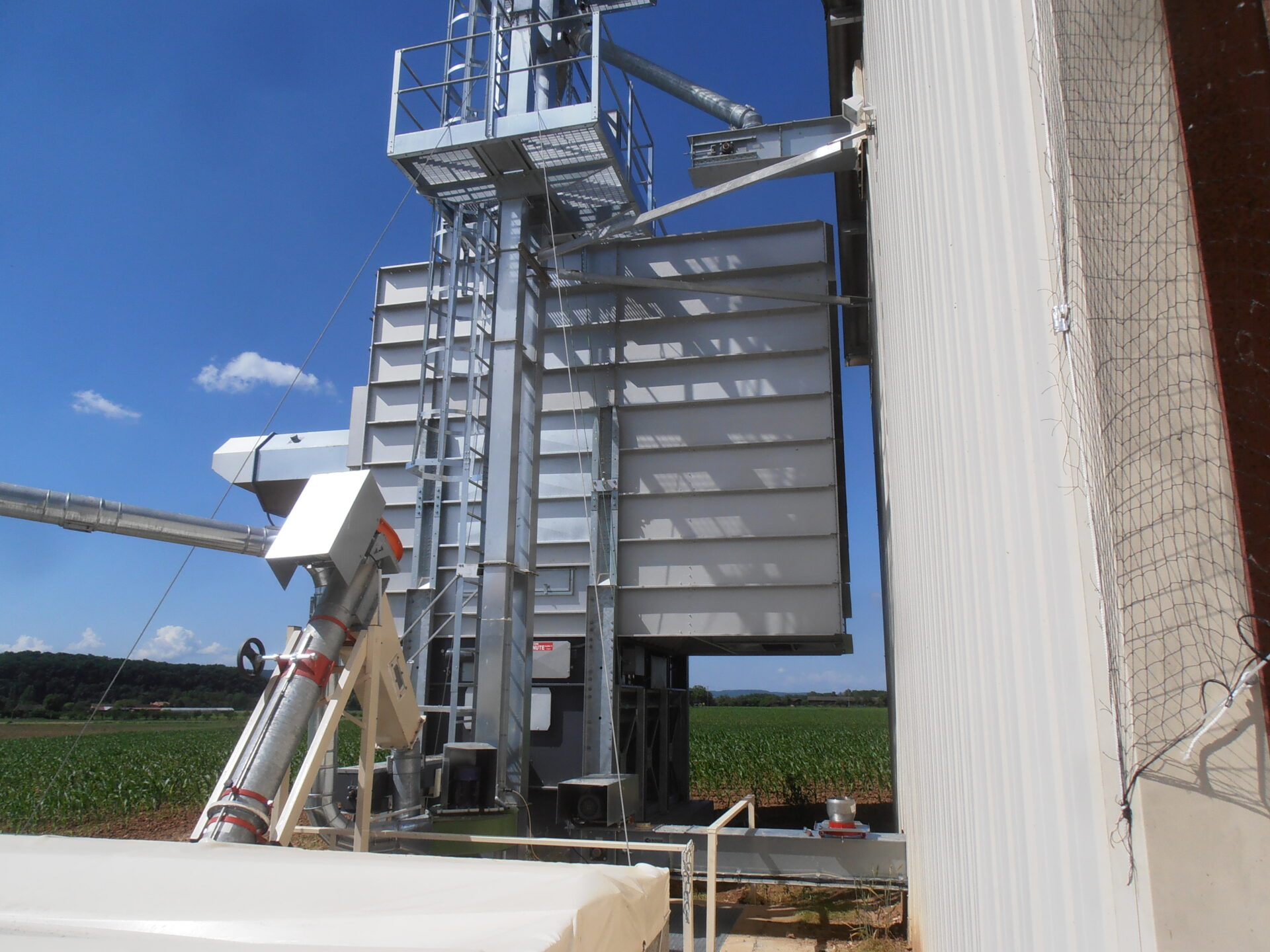 Надсушильный бункер большого объема позволяет зерну "отдыхать" в процессе рецикла перед каждым последующим попаданием в сушильную шахту. По сути надсушильный бункер выполняет функцию зоны отлежки и позволяет зерну перераспределить внутреннюю влагу на поверхность и выровнять влажность осушаемого вороха в целом.